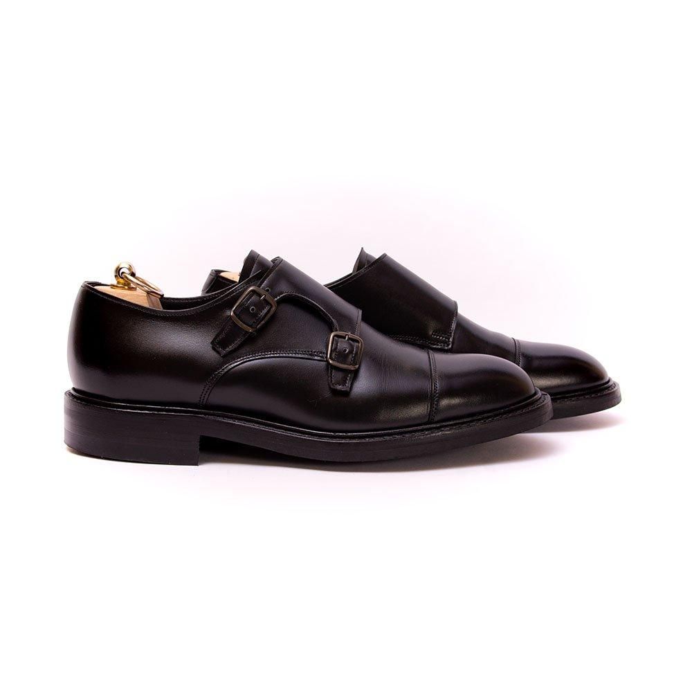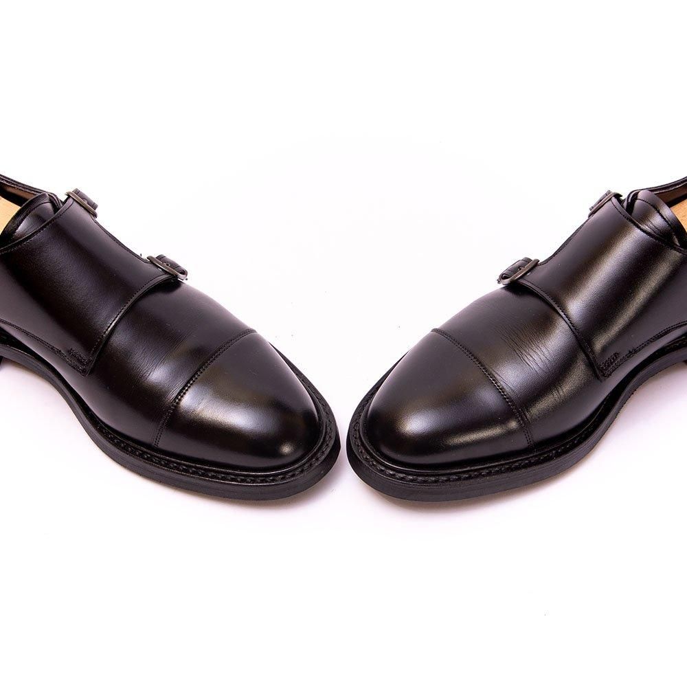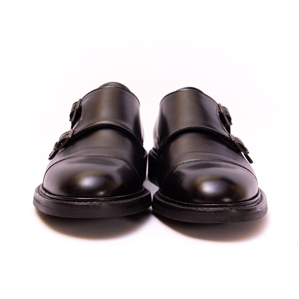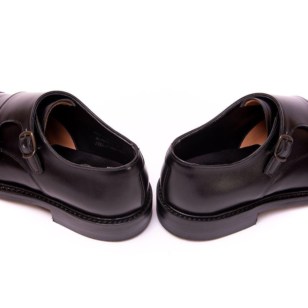 ダブルソールにストームウェルトのボリューム感のある1886コレクションのダブルモンクシューズ。オールブラックに統一された中に真鍮のバックルがマッチしてシックな印象で履けます。着用1,2回の良好な状態。