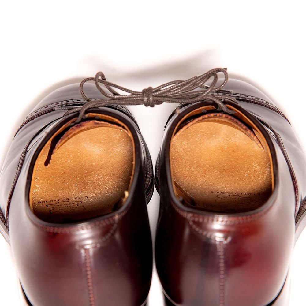 ドレス木型ハンプトンラストを使用したバルモラルタイプのパンチドキャップ。丸みのあるショートノーズのクラシカルなフォルム、踏まずから踵にかけてのホールド性の高さが魅力。コードバンの存在感もうまく調和しています。