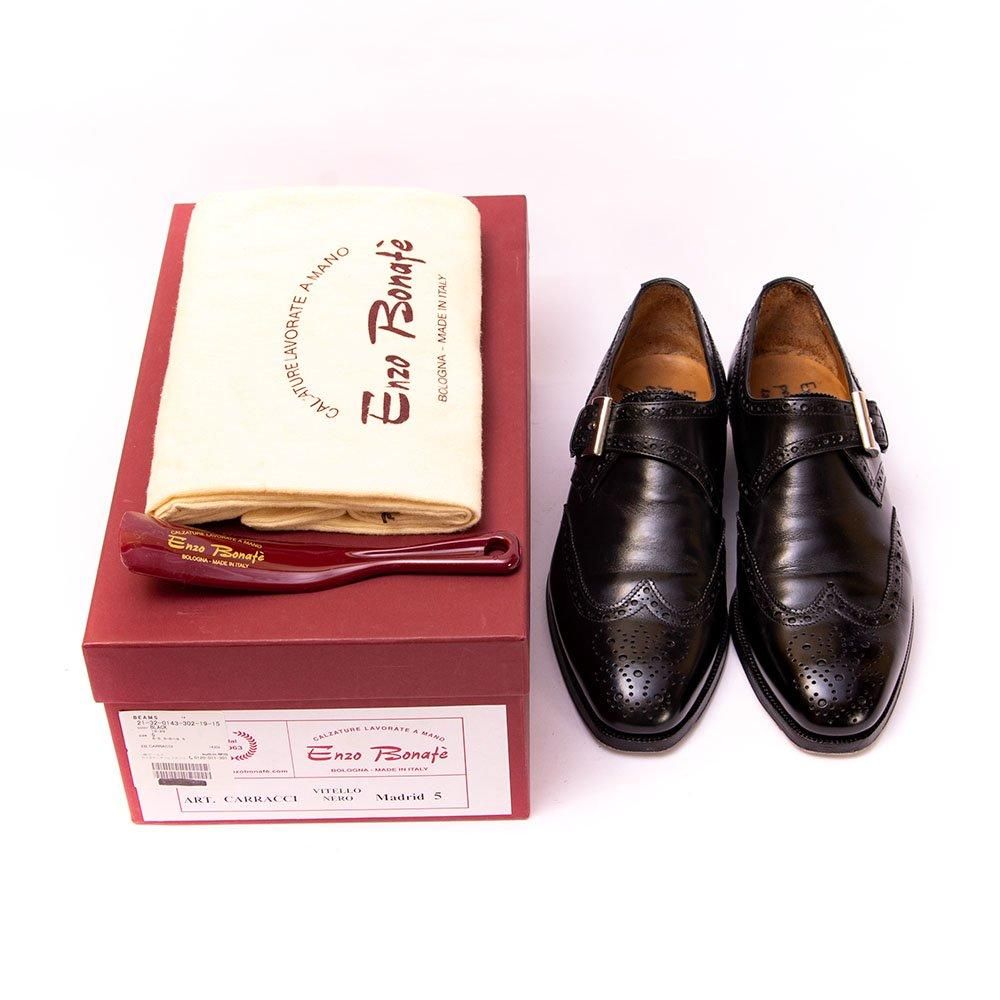 エンツォボナフェ CARRACCI(カラッチ) シングルモンク ウイングチップ フルブローグ ブラック BEAMS(ビームス)別注 サイズ5