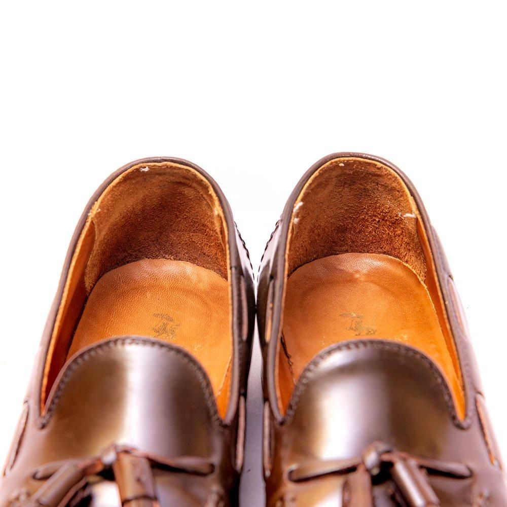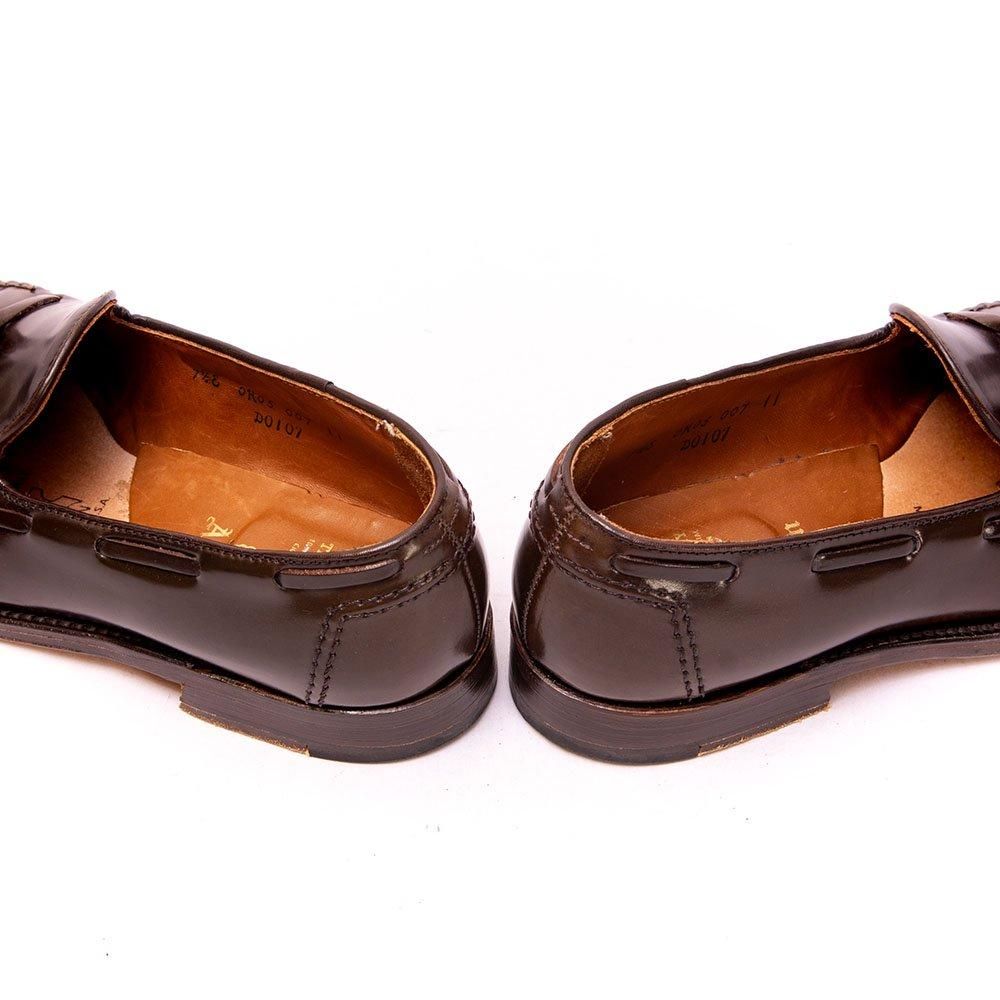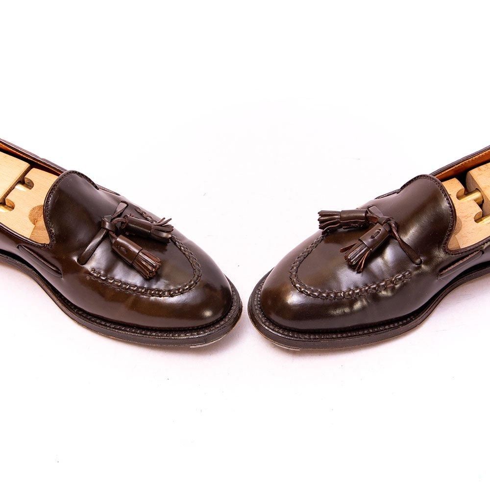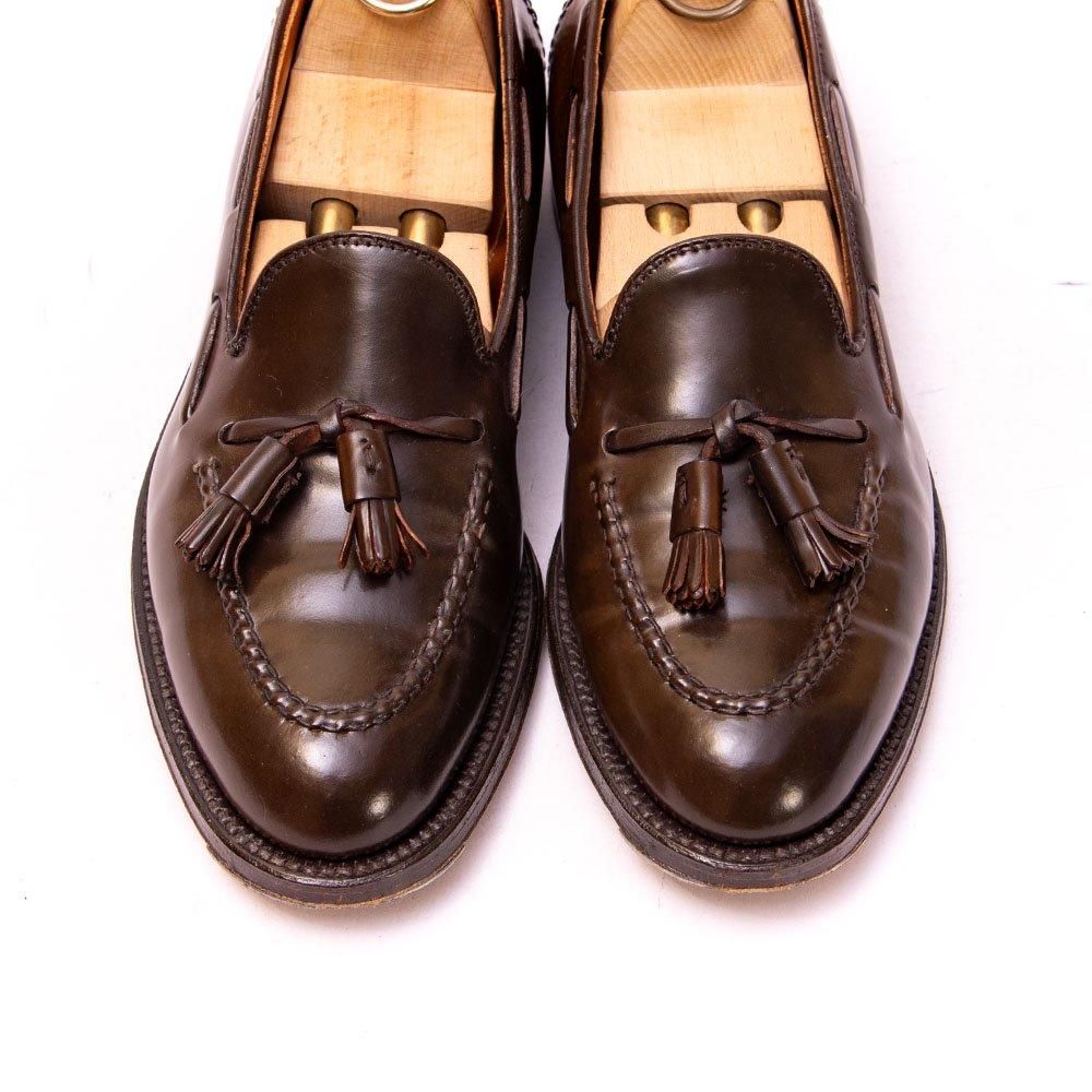 レアカラーコードバンモデルでも見かける事の少ないシガーカラーのタッセルローファーですがこちらは更にフォクシングステッチやモカも手縫いの贅沢仕様。甲周りのホールド感にも優れた個体で使用感も少ないです。