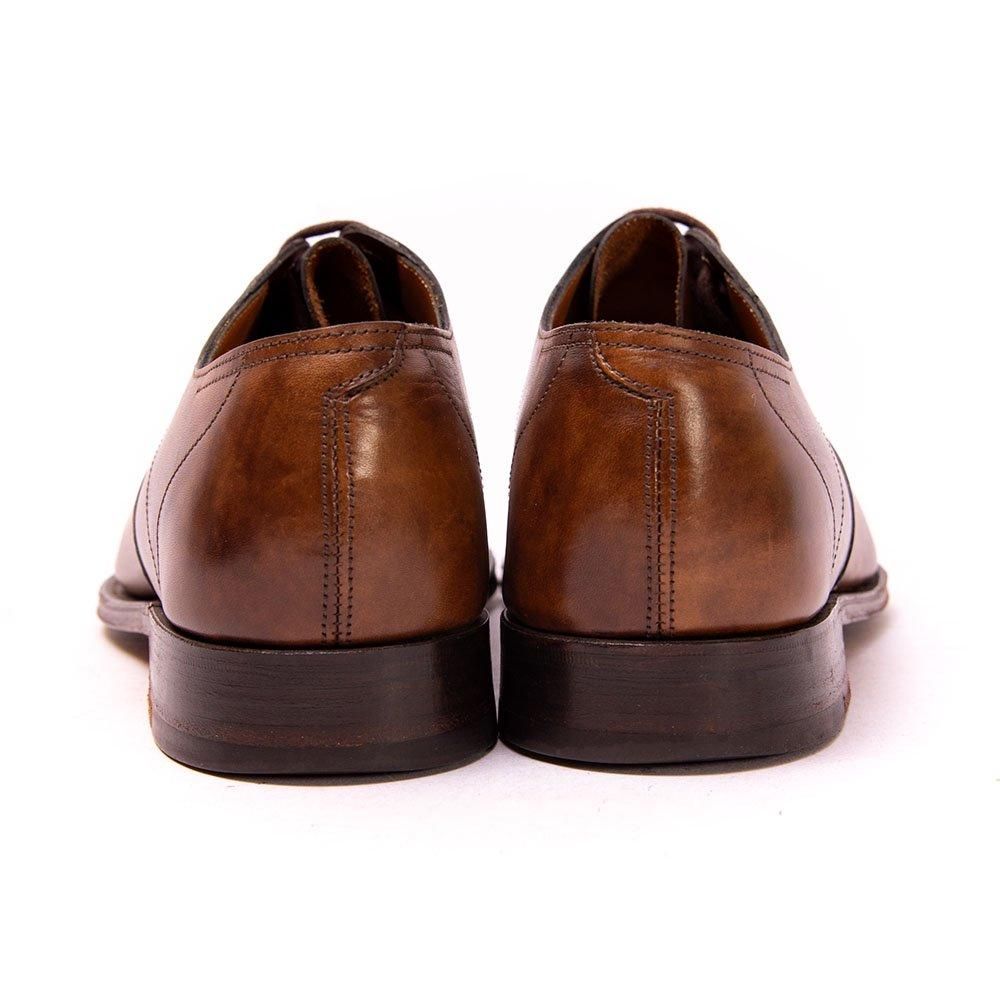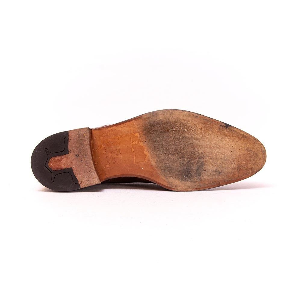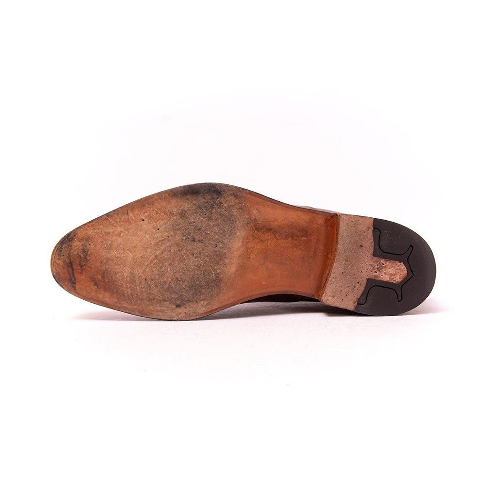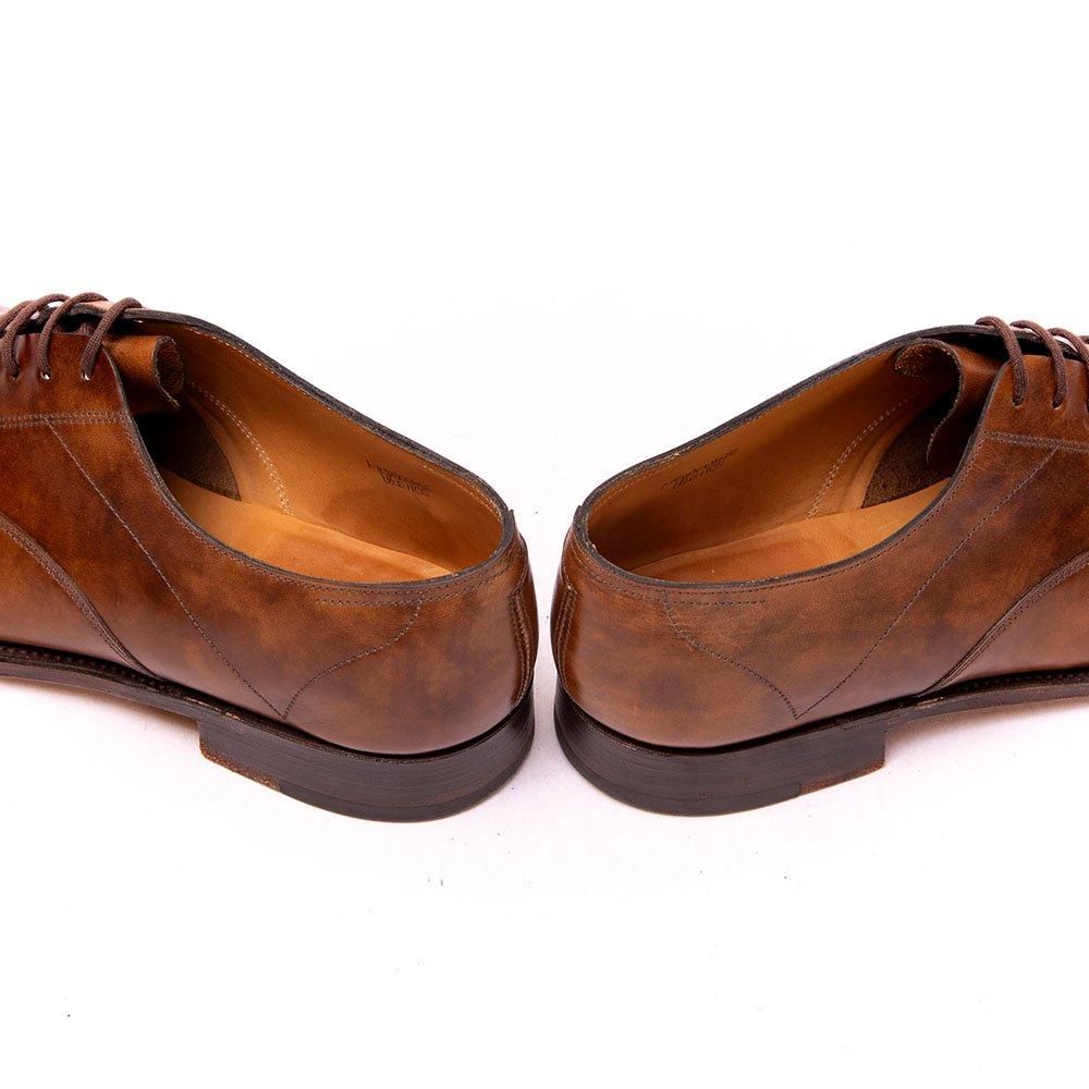 アンライニングのプレーントゥのデザインで屈曲部分のストレスを感じにくい一足。あまり見かけない1105ラストはややオブリーク気味のインストレート アウトカーブのシルエット。沈みも1mm程度かつソール削れも少ないです。