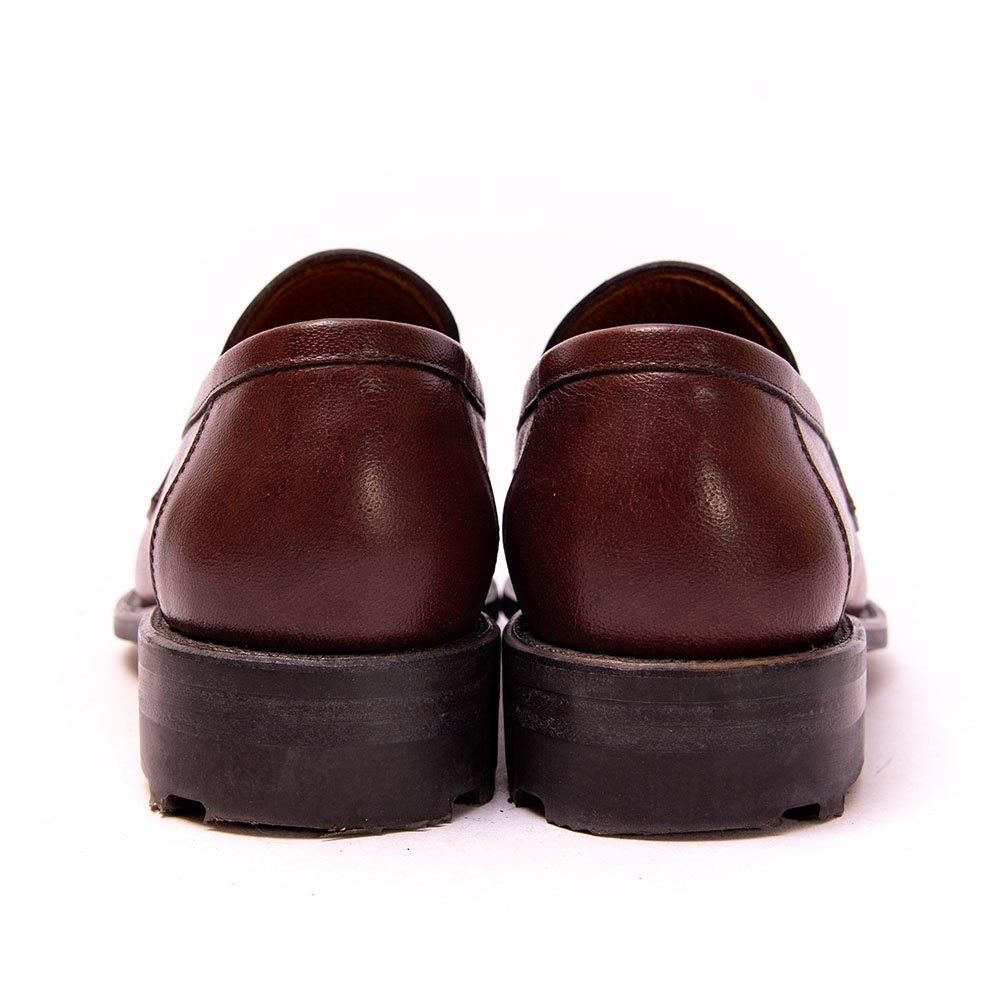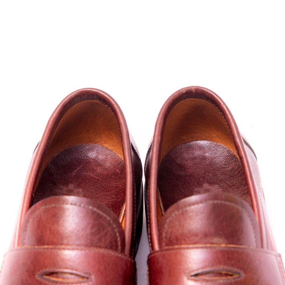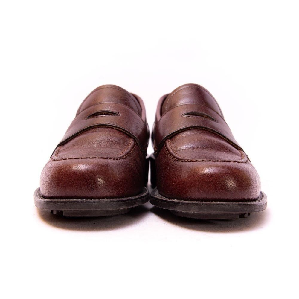 アルチザンな印象のある竜崇縫靴店の代表モデル。ワイルドな質感と頑丈さが売りのキャメルレザーにリッジウェイソールの屈強なローファーです。概ねUK4.5~5相当のサイズ。低めの甲設計、ヴァンプ部長めでホールド性の高い木型です。