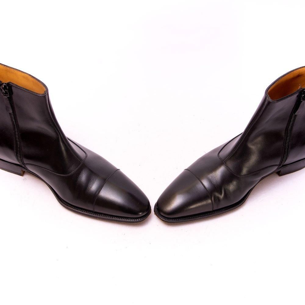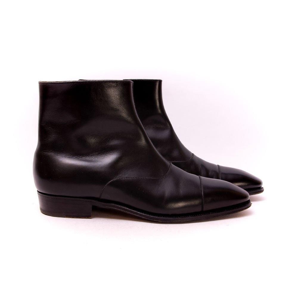 JMウエストンとしてはモードに振ったデザインのサイドジップブーツ。ロングノーズにチゼルトゥの木型とデザインの相性もよく美しいシルエットにまとまっています。着用回数は比較的少ない状態。概ね一般的なUK6.5でやや甲が高めサイズ感となります。