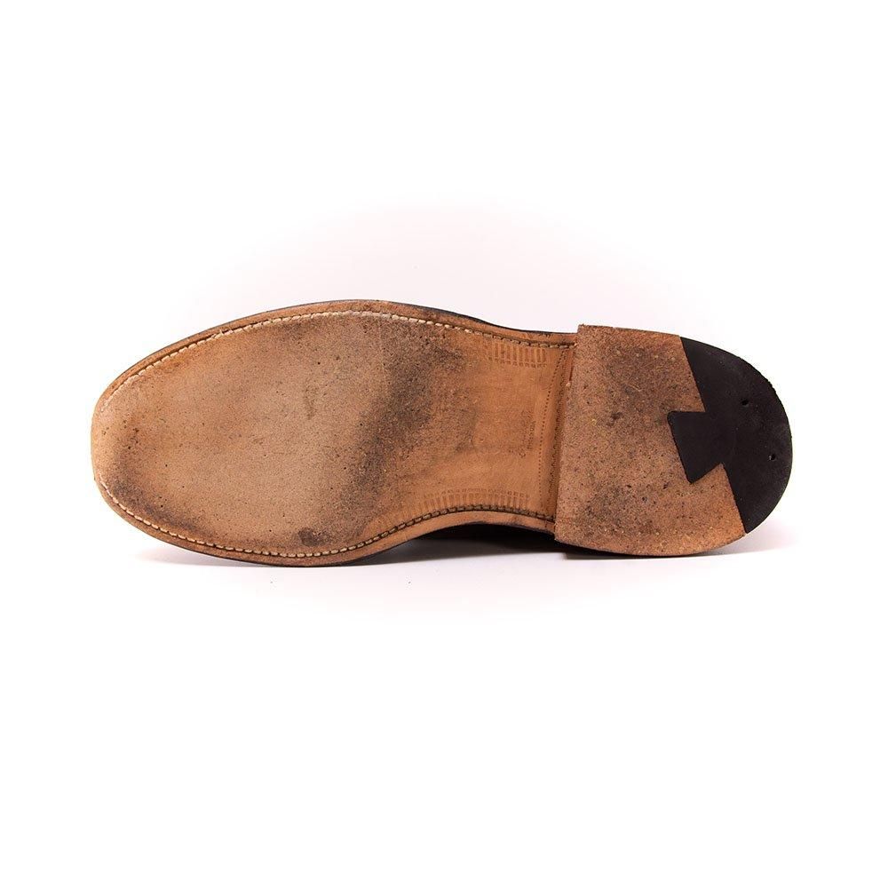 色味の薄い個体で赤みを感じるバーガンディコードバンの990。シンプルなプレーントゥに癖のないバリーラストで万能な一足。こちらは着用回数は多くはなく、中底の沈みも2ミリ以下の中古品です。