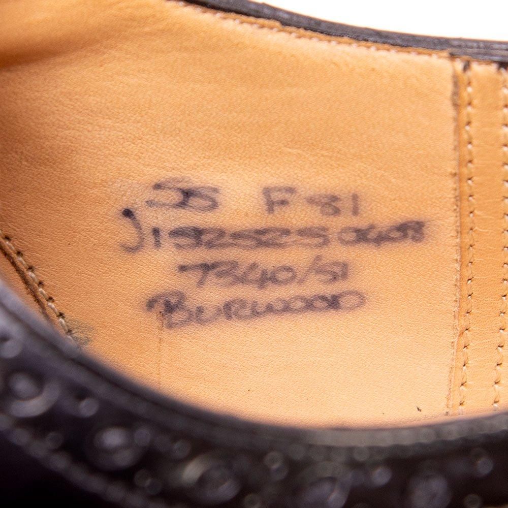 クラシカルな81ラストのエッグトゥのフォルムとフルブローグデザインの名作バーウッド。ポリッシュドバインダーの光沢感にブラックのシックな雰囲気で合わせられます。試着程度の未使用品です。