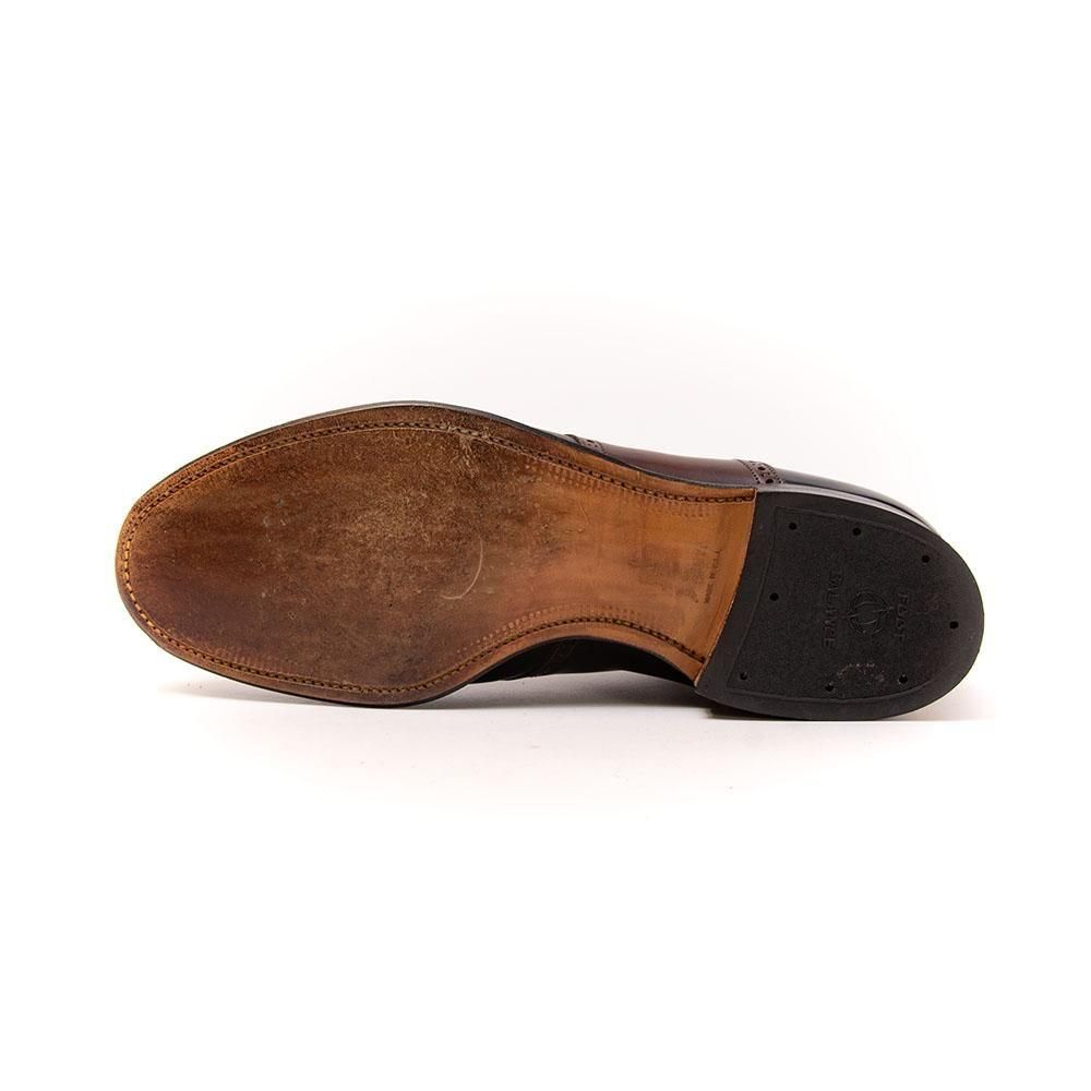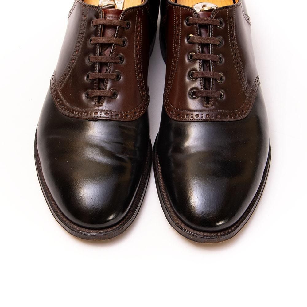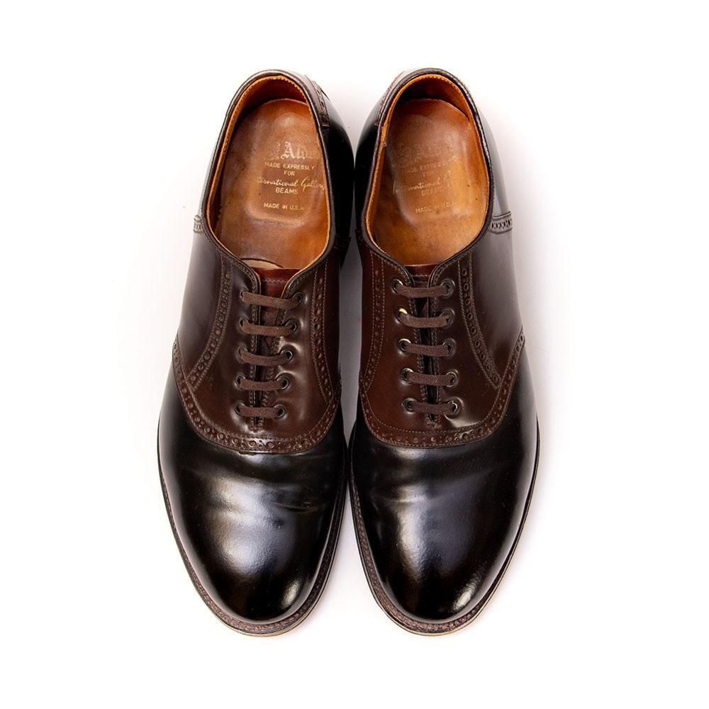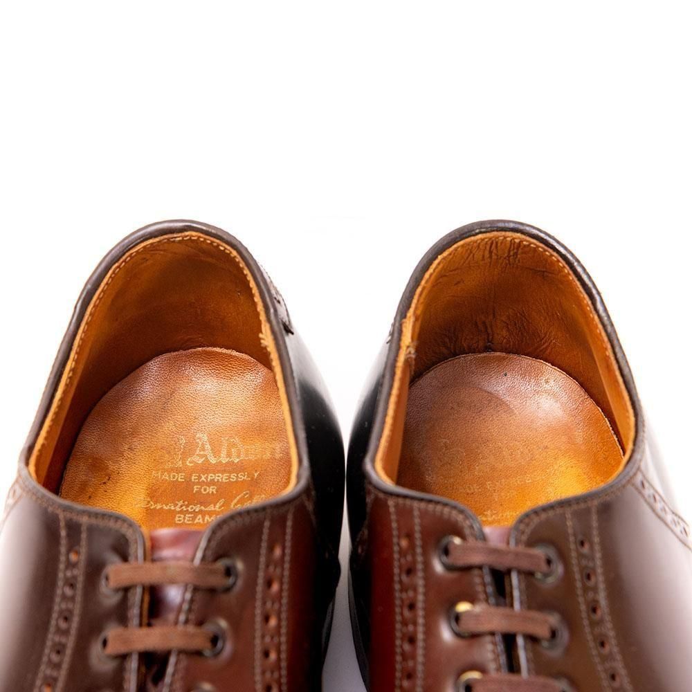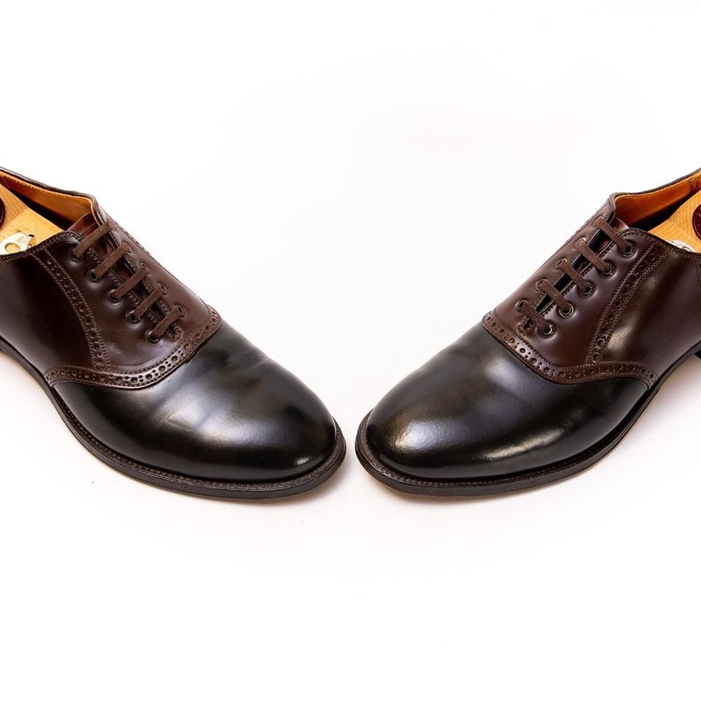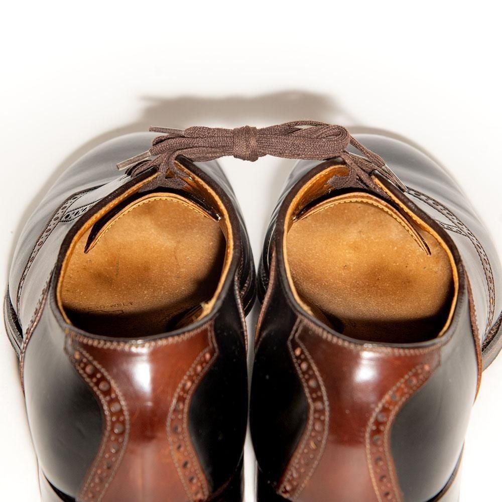 オールデンのサドルシューズはバリーラストが多いですが、こちらはモディファイドラストを採用した珍しい一足。ブラックとバーガンディの落ち着いたカラーリングが上品な印象です。内部の使用感はありますが、削れなどは軽微な状態です。