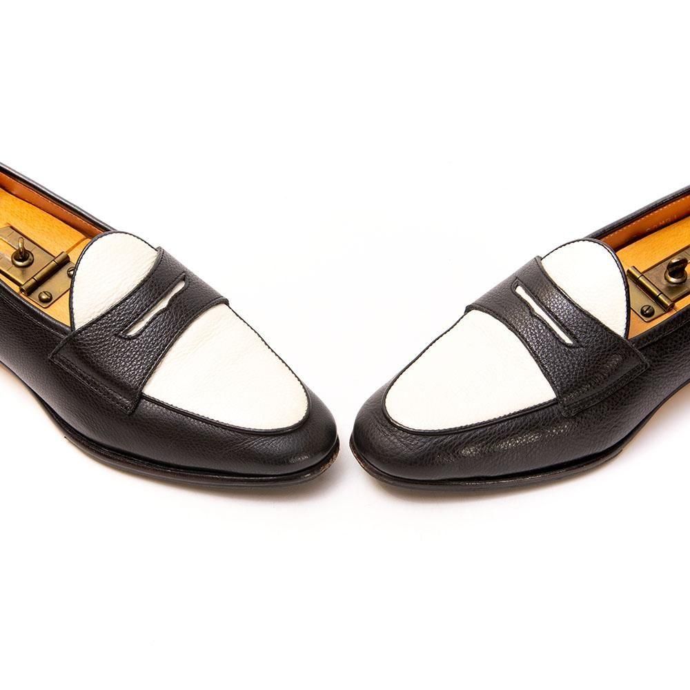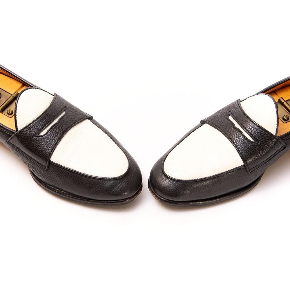 古き良きクラシックなコンビデザインのコインローファーにポルペッタの得意とする華奢でスリムなフォルムがまとまった一足。シボ感があることによりブラックとホワイトのコントラストが落ち着いた雰囲気に仕上がっています。