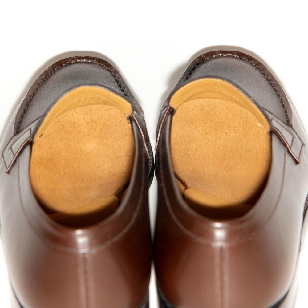 ウィズ展開も多い中でバランスが美しいとされるCウィズのJMウエストンのアイコンモデルの180。ダークブラウンボックスカーフは堅すぎない落ち着いたカラーが魅力。数回着用程度、これから足に馴染む状態。