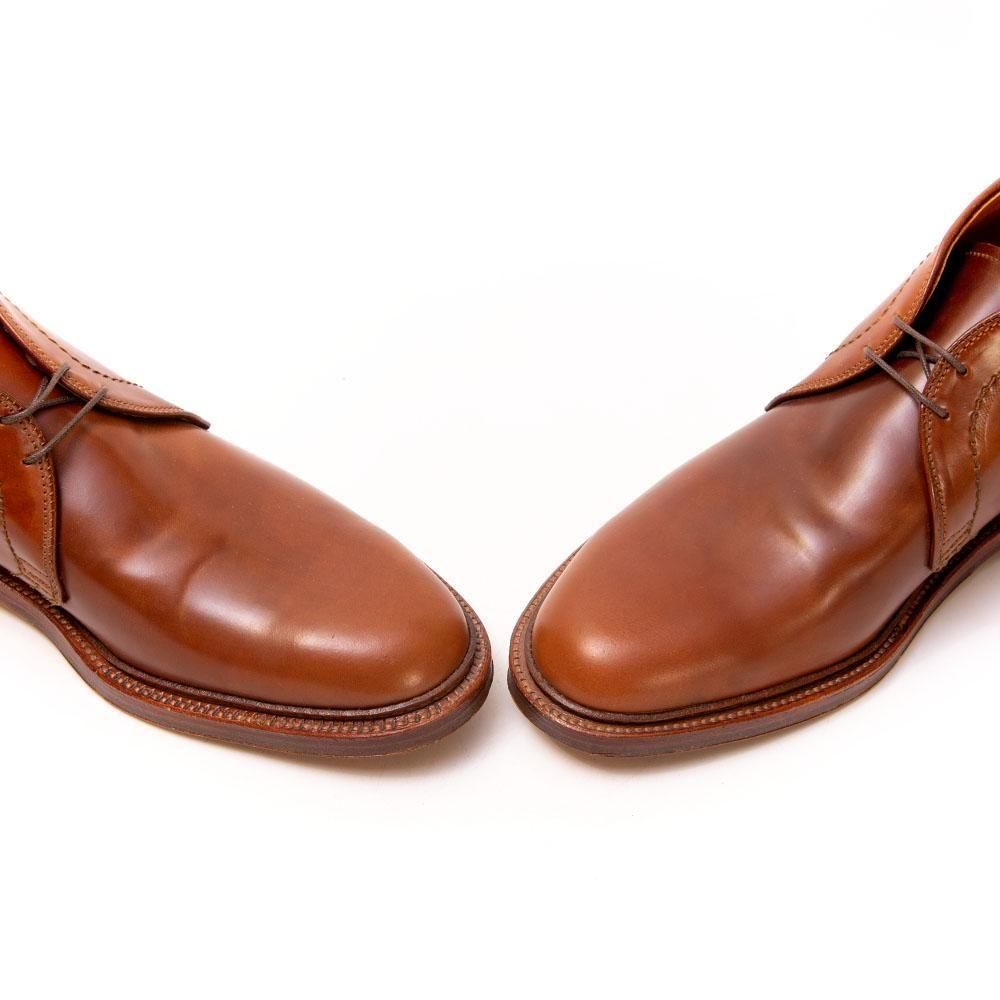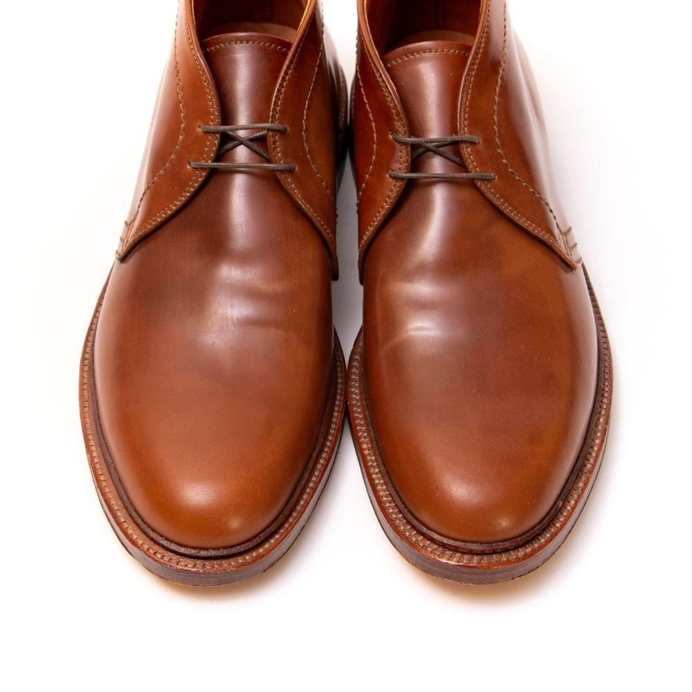 色味が薄く、レアカラーコードバンの中でも人気の高いウィスキーの一足。大きいパーツで作られるチャッカブーツは深みを増すエイジングや波打つシワを大胆に楽しめます。履き皺の入っていない、シワ入れできる未使用品です。