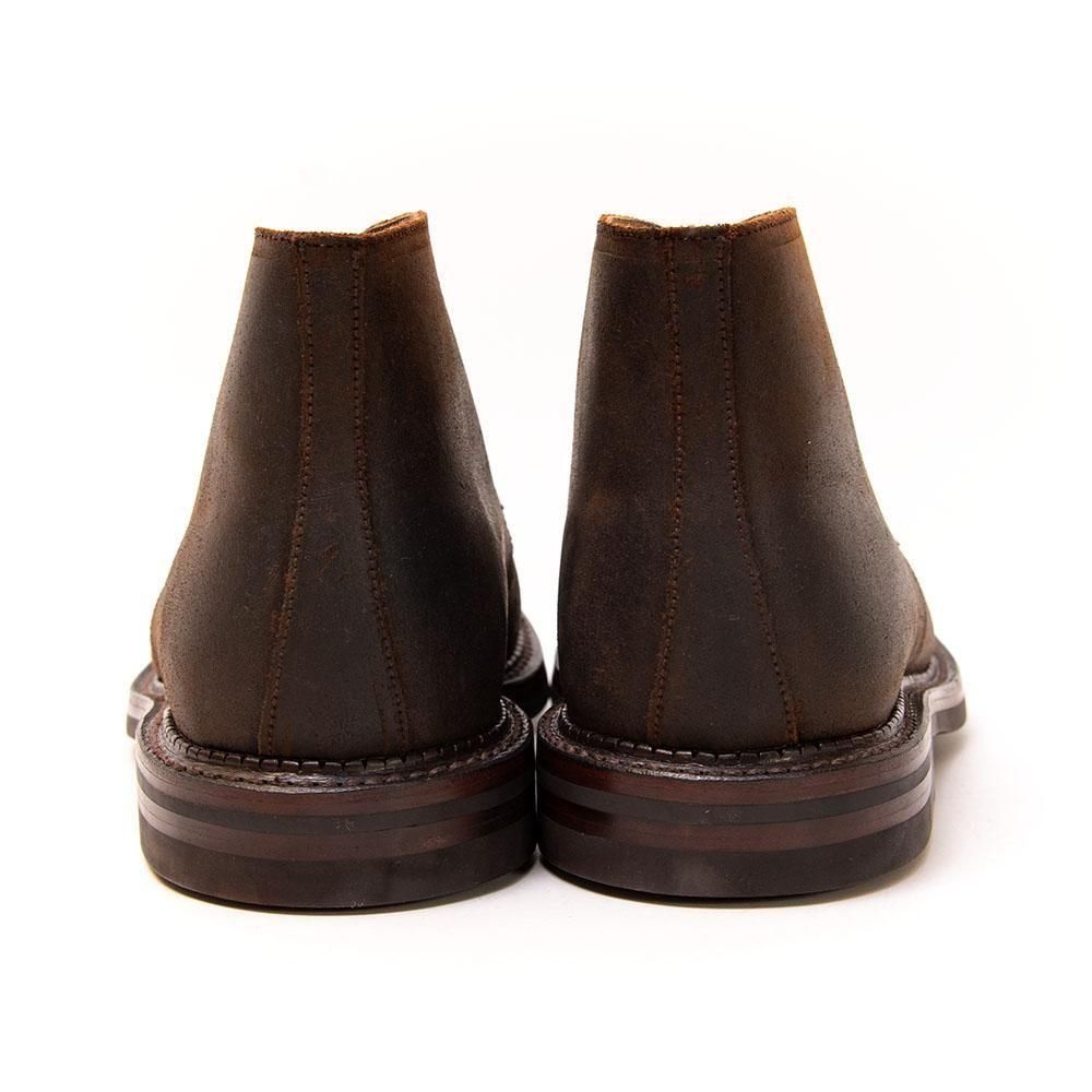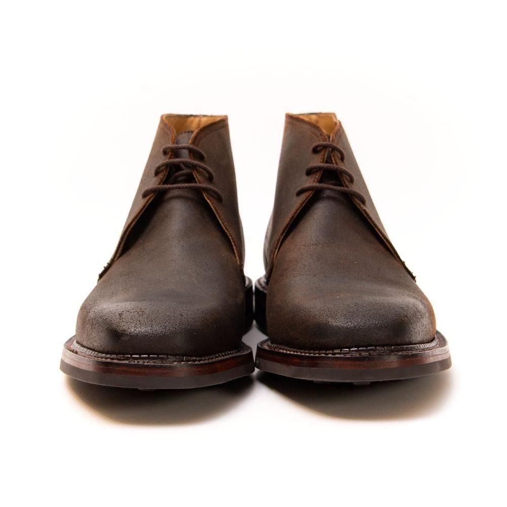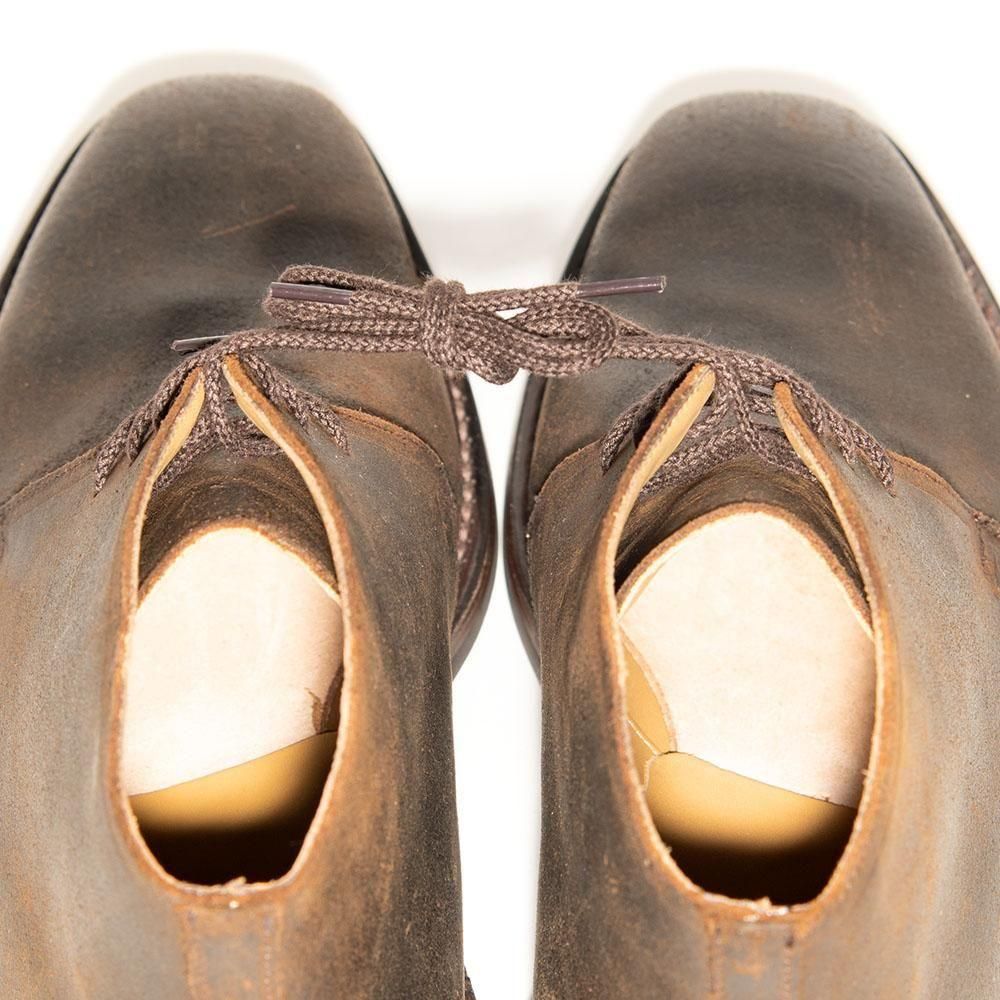 チゼルタイプのスクエトゥが特徴的な336ラストが採用された3アイレットチャッカブーツ。ラフアウトスエードの独自の風合いは経年変化も楽しめ、悪路の歩行での汚れや傷も気にせず履いて頂けます。室内での試着程度の未使用品です。