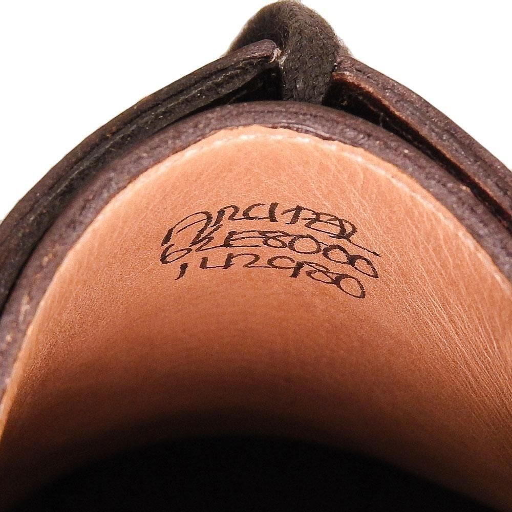 2アイレットのVフロントダービーデザインでロングノースでセミスクエアトゥのソリッドな8000ラストのフォルムが引き立つ一足。大きいパーツでダークブラウンミュージアムカーフの風合いを楽しめます。
