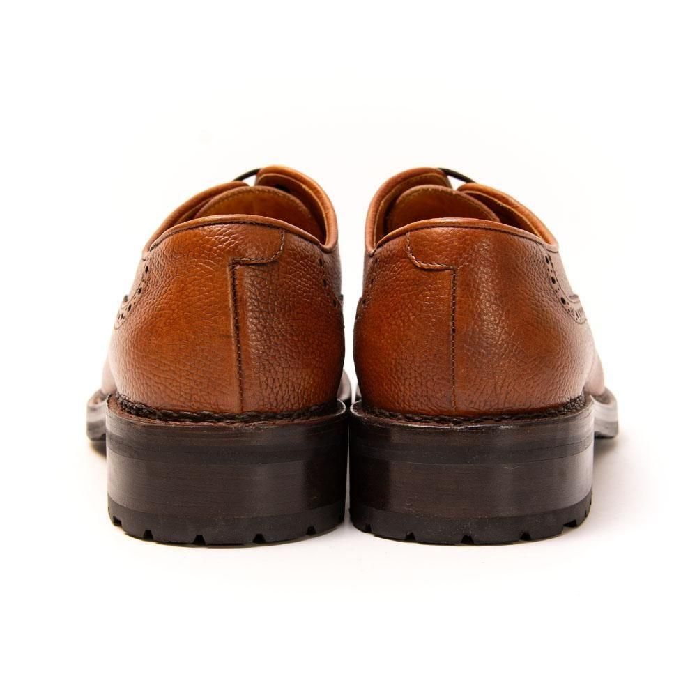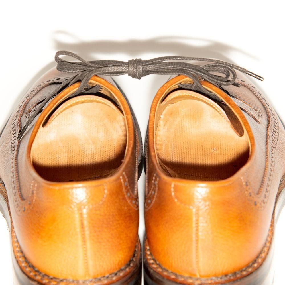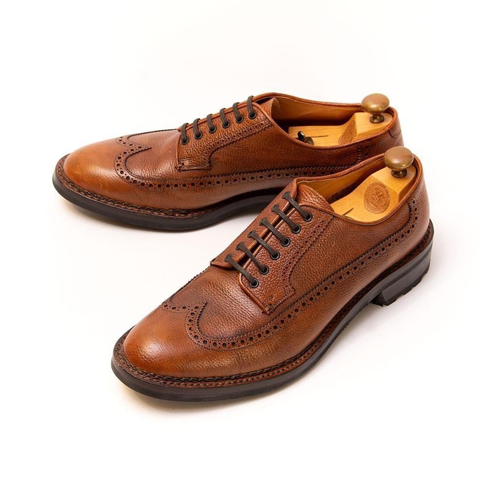 アメリカントラッドなロングウイングデザインにイタリアンシューズのノルベジェーゼ製法、グレインレザーを組み合わせた無骨なモデル。こちらはインソックに調整跡が少しございますがベタつきなどはありません。