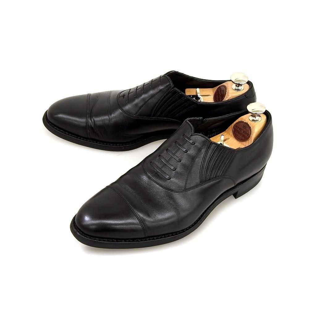 三陽山長 友三郎 ストレートチップ レイジーマン サイドエラスティック ブラック サイズ7