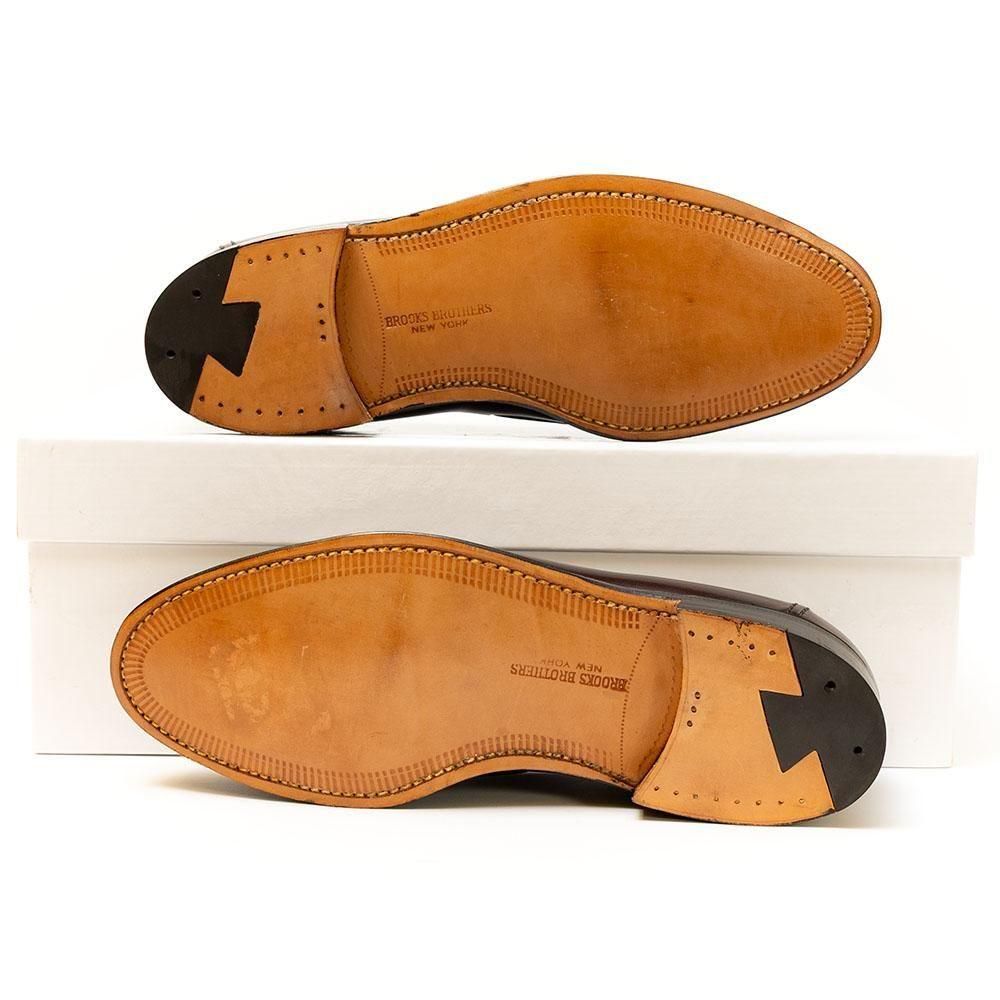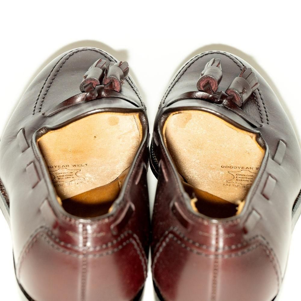 踵に施されたフォクシングステッチがブルックスブラザーズ別注の証ともいえるタッセルローファー。元祖でもあるオールデンが製造を手掛けていた時代の未使用品はコレクターズアイテムとしても価値のある一足です。