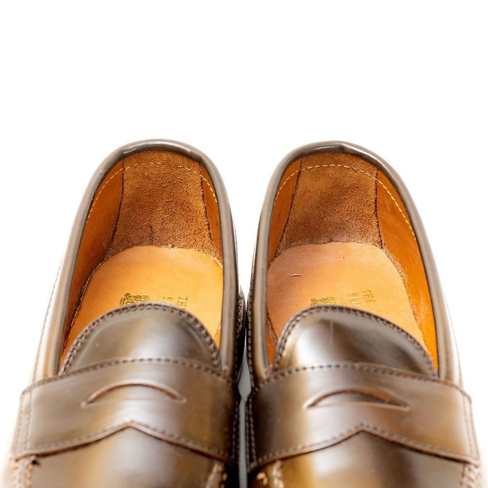 緑みのあるブラウン系のシガーコードバンはレアカラーの中でも日常的に溶け込む絶妙な色合いが魅力。アッパーとまとまりの良いアンティークエッジと組み合わせ。未使用の状態から履き込むことでシワや濃淡などエイジングも楽しみです。
