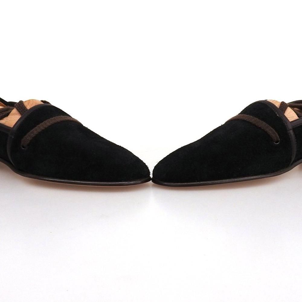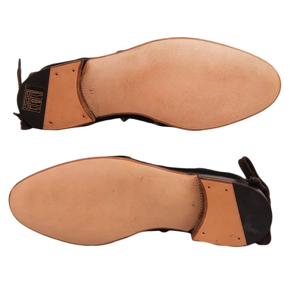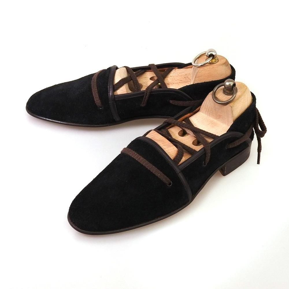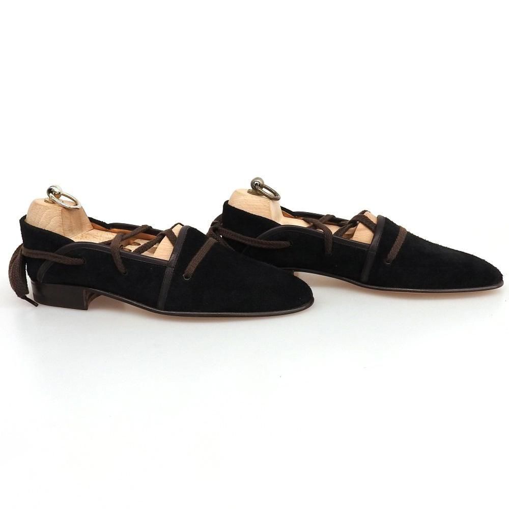 過去の名作エスパドリーユを復刻したもので、アッパーにスエードを使用しメンズでは珍しいレースアップのデザイン。上品な印象を与えつつ、カジュアルスタイルの普段履きに取り入れて欲しい一足です。こちらは試着程度の未使用品となります。