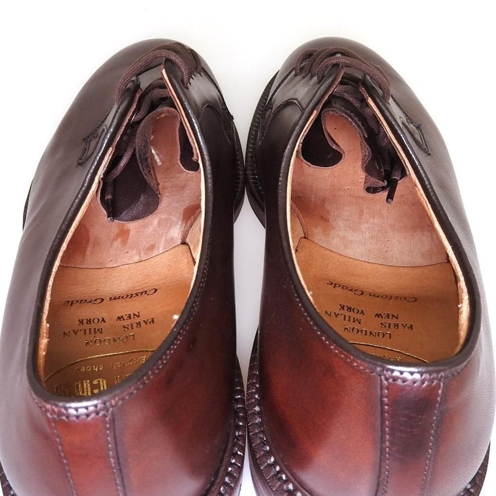 旧チャーチのシャノン専用ラストである224が採用されている、プラダ傘下直後の移行期品。現行のものと比較するとつま先周りがややスッキリとした印象です。 左足ヴァンプにトラや色ムラは一部ありますが、未使用品と時代考慮すれば希有な状態です。
