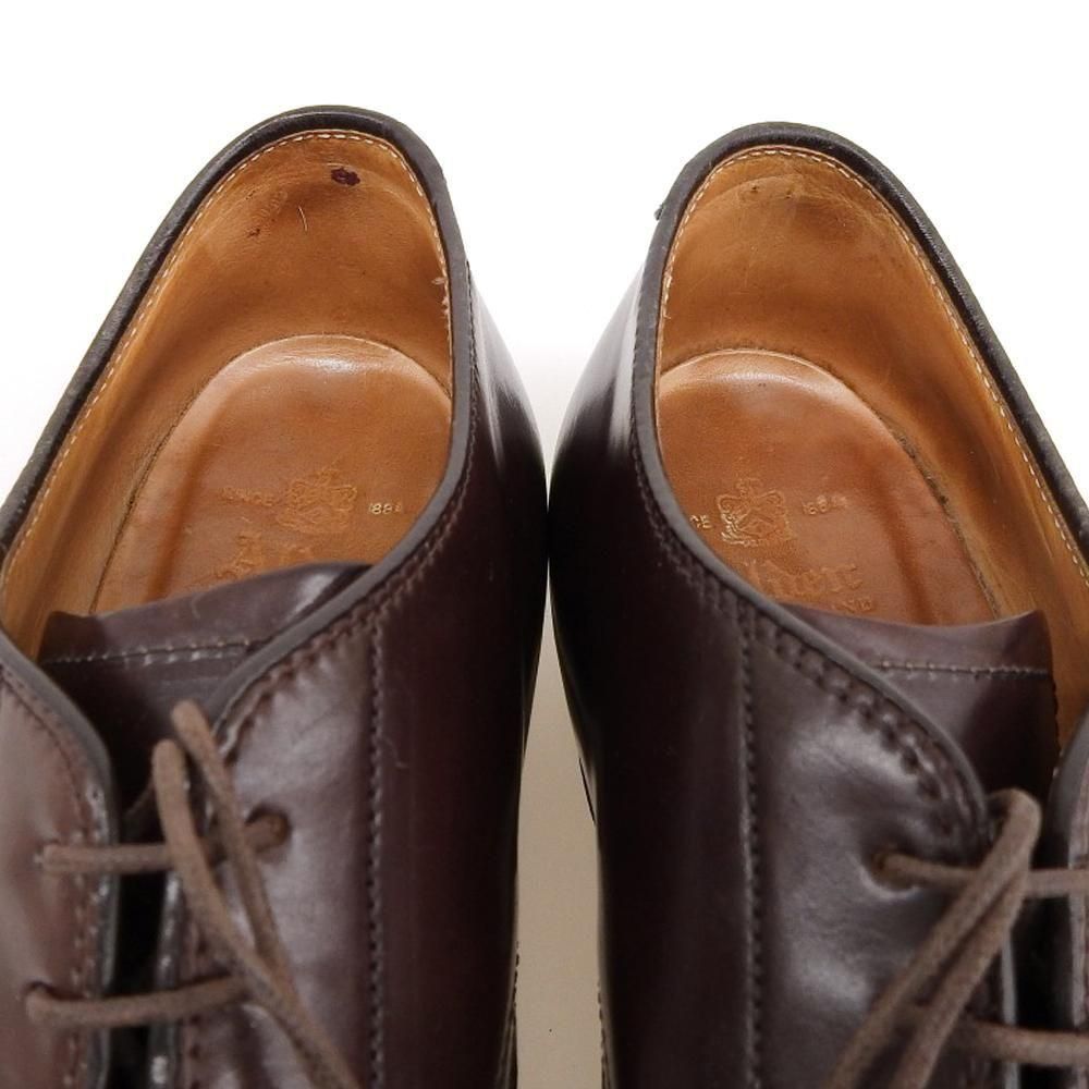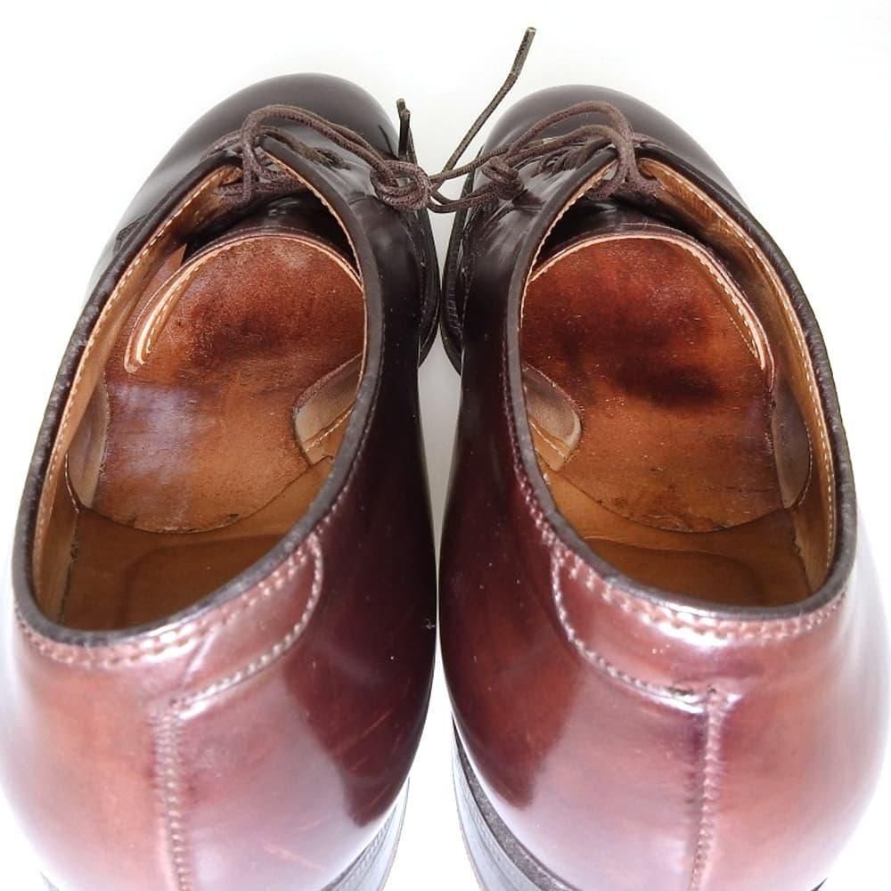 オールデンの魅力を存分に感じる事のできるモディファイドラストのプレーントゥ。この組み合わせは6アイレットのモデルが主流ですが、こちらは5アイレットでややすっきりとした佇まいです。履きこまれた印象はありますが、リフトの削れなどは微量です。