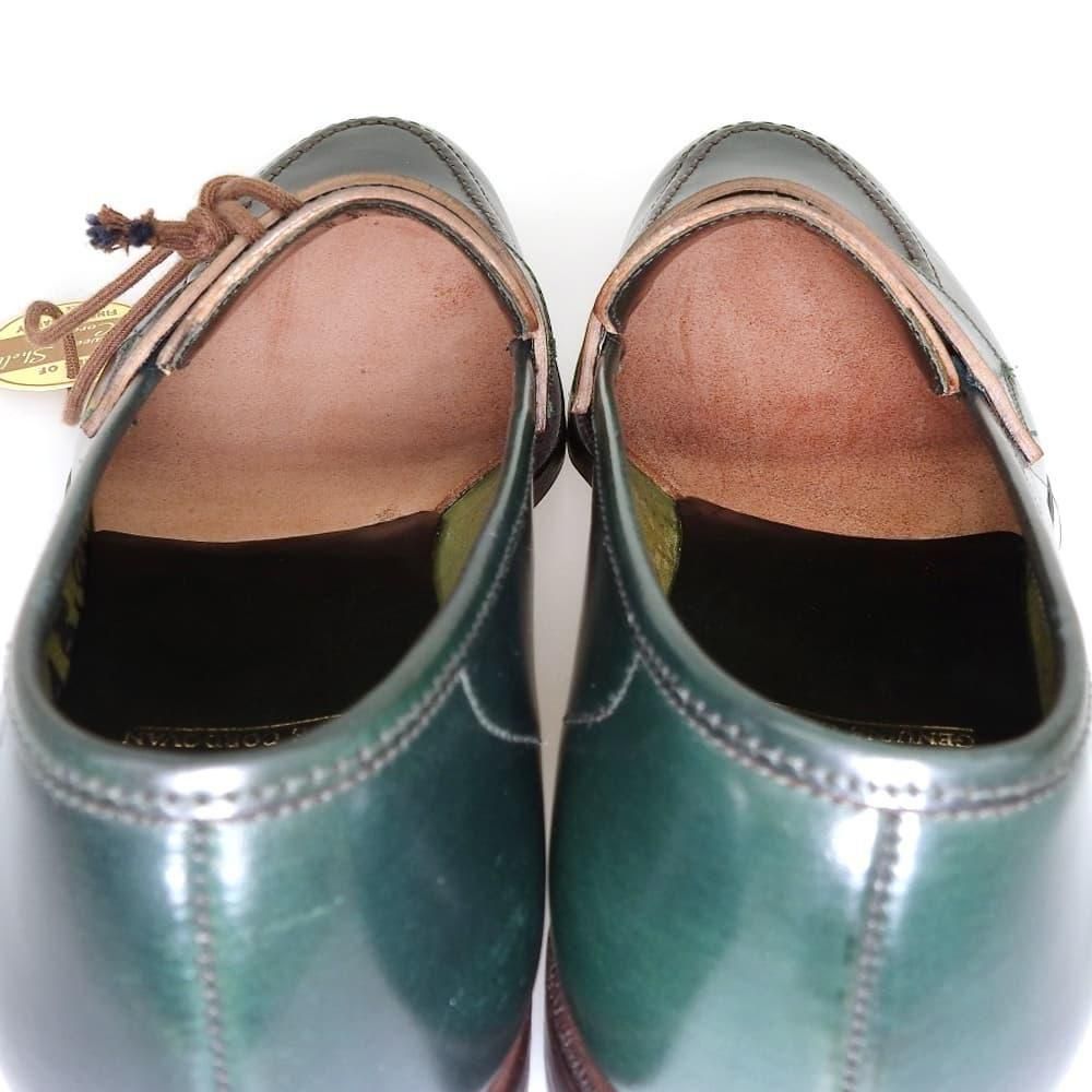 オールデン未展開の青みがかったグリーンコードバンを採用した一足。アンライニング仕様、フレキシブルソールに履き心地に定評のある375ラストで履き始めから快適に着用できます。限定販売されていたアイテムの未使用品となります。
