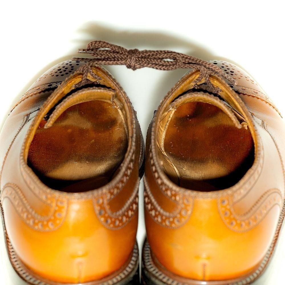通称ジスカールにも類似するJMウエストンのセミブローグ。製造年代の古いお品のため、透明感のあるタンカラーの革質が魅力。使用は適度にされているため、細かなシミや汚れはありますが、目立った傷は見受けられません。