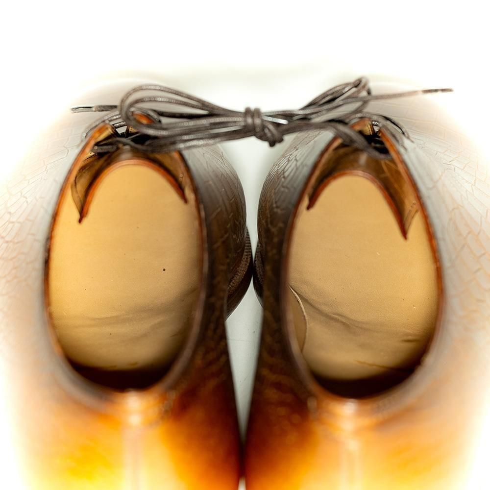 創業者の名を冠したアイコンモデルのアレッサンドロ。圧倒的な唯一無二のデザインで存在感を放ち、ベルルッティの古き良き時代の魅力を堪能できる逸品です。一時期のみ製造されたクロコダイル型押しレザーを使用した一足。純正シューツリー付属。
