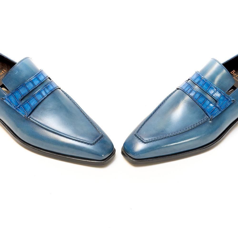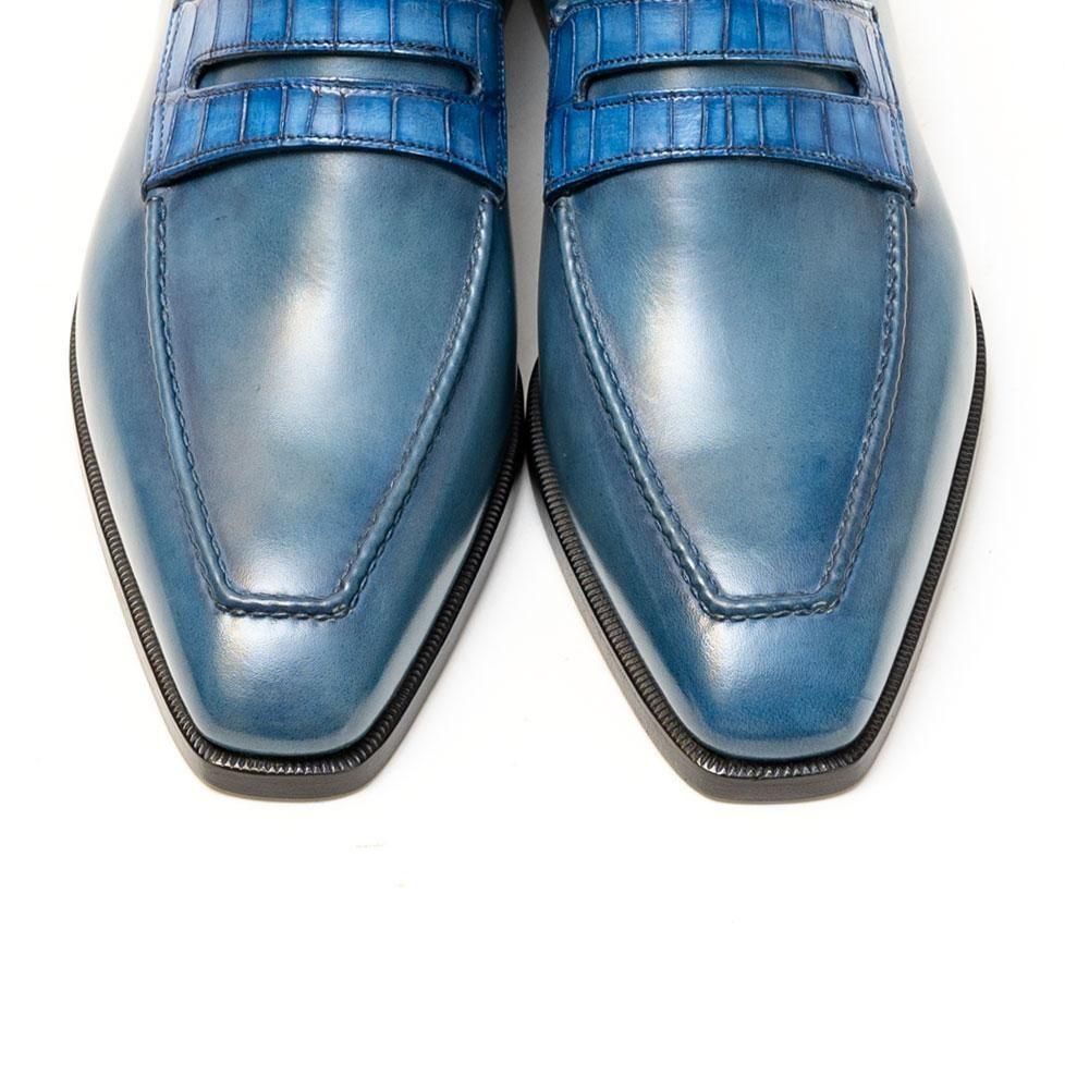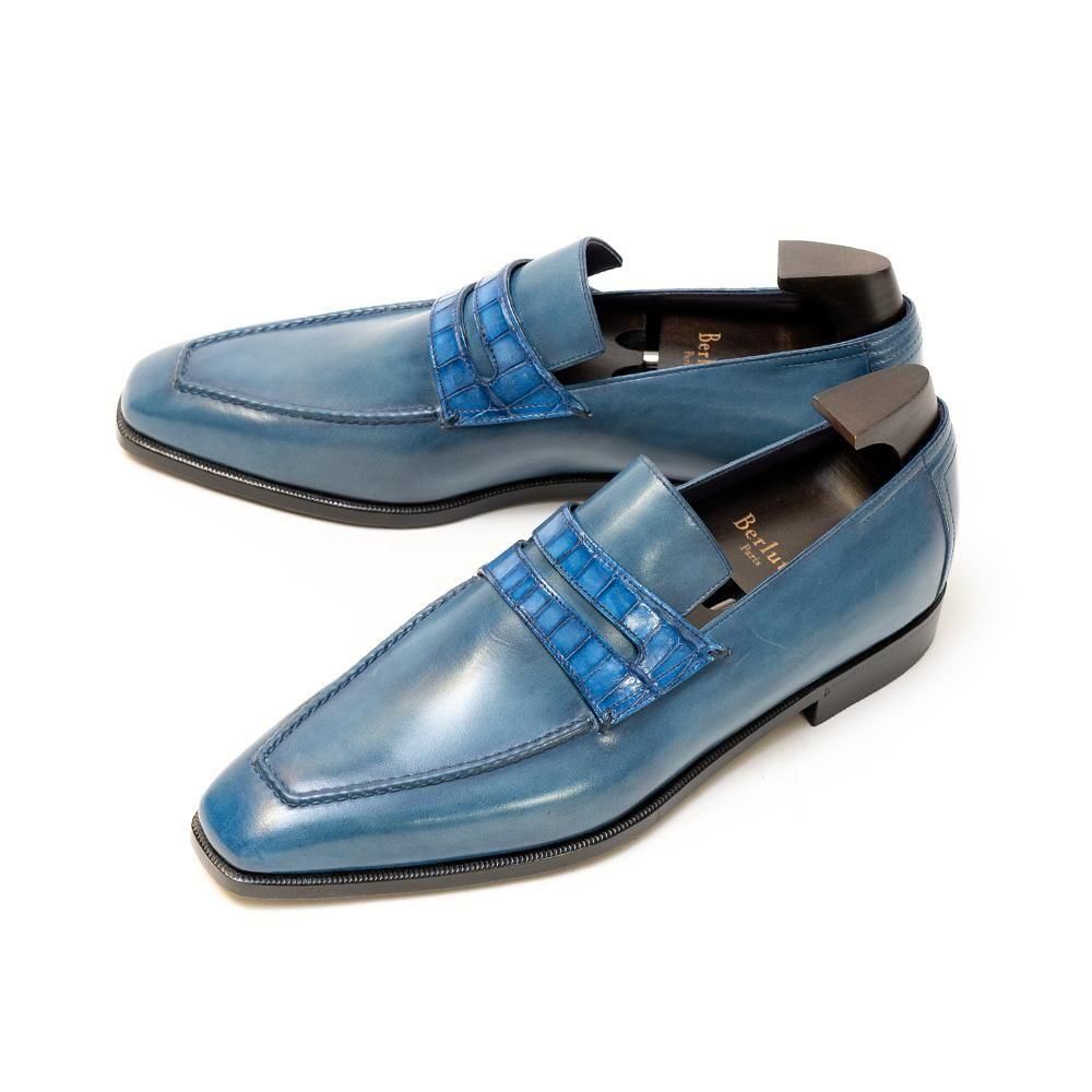 ベルルッティ ANDY(アンディ)コインローファー ブルーフラッシュ カーフ×クロコダイル サイズ7