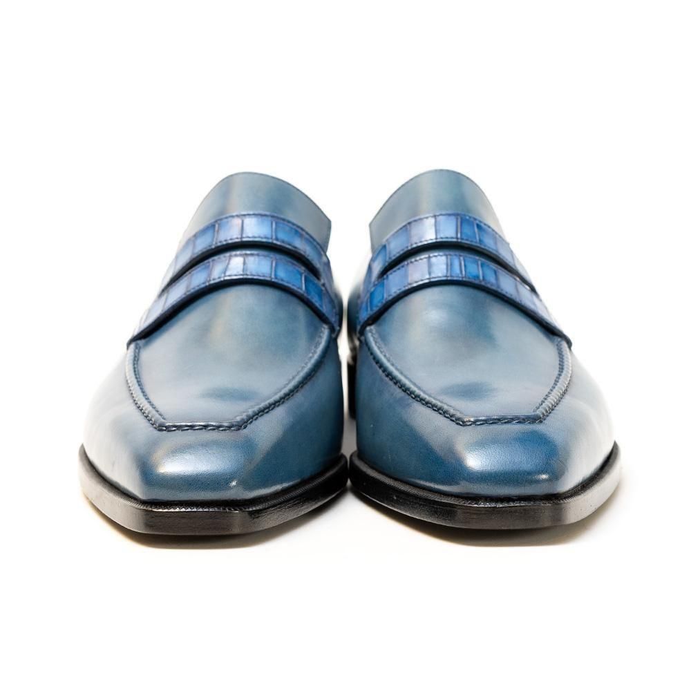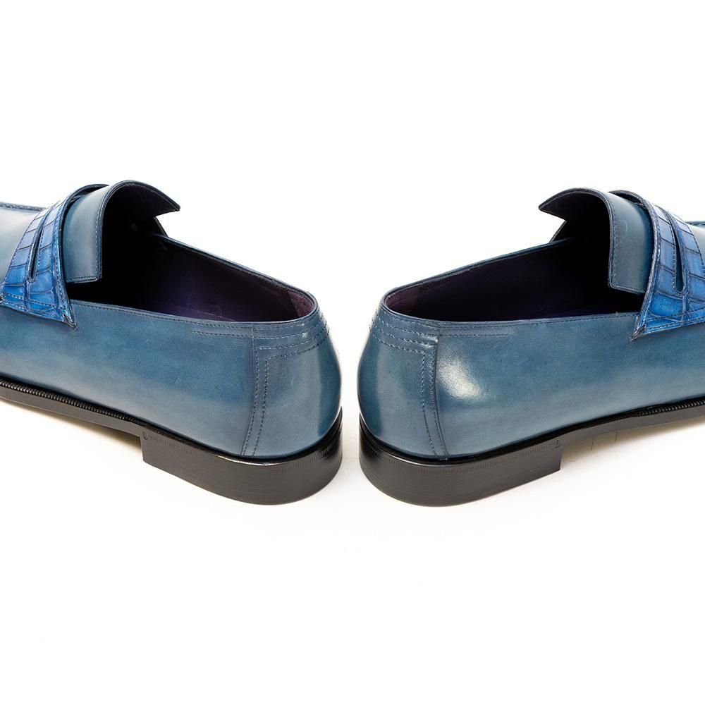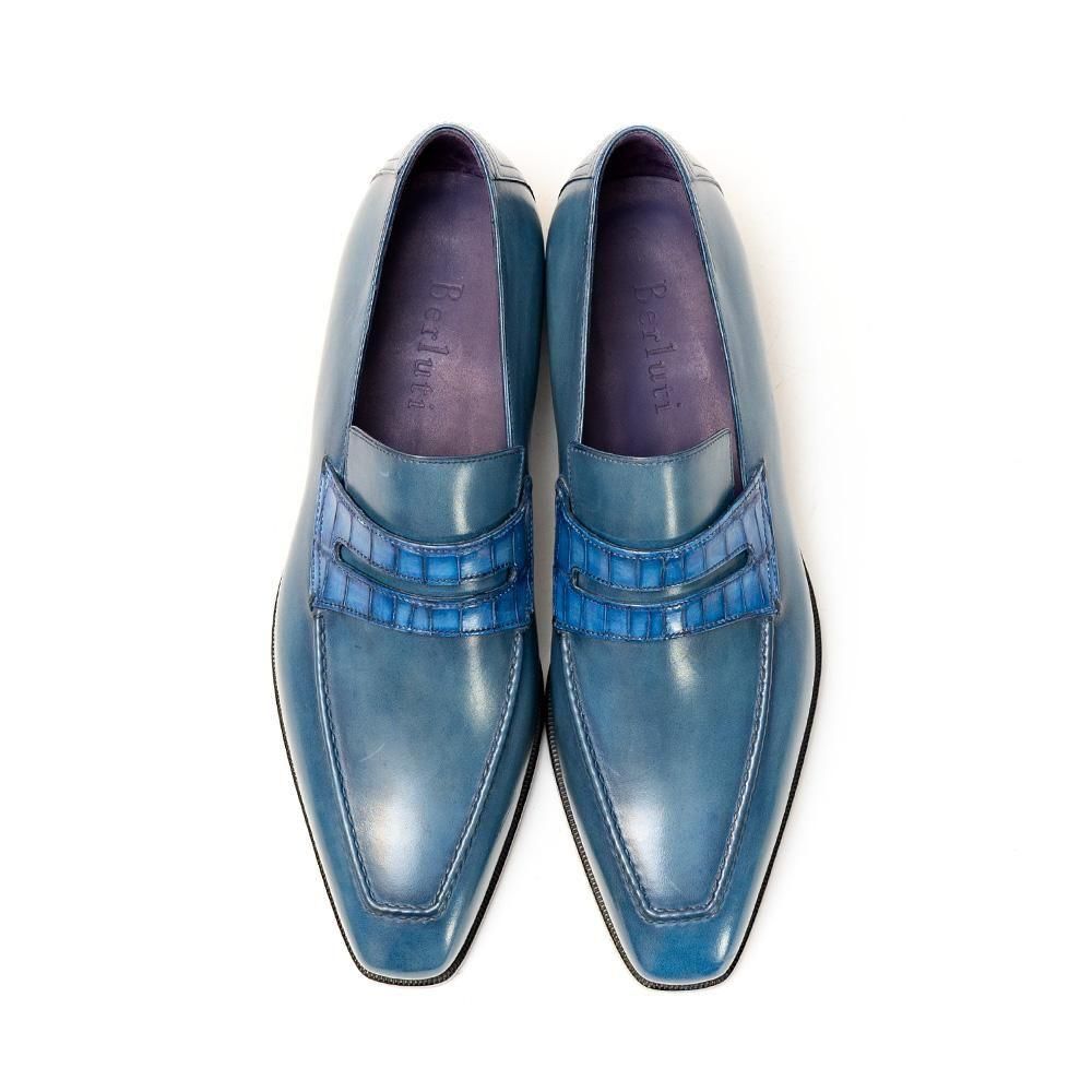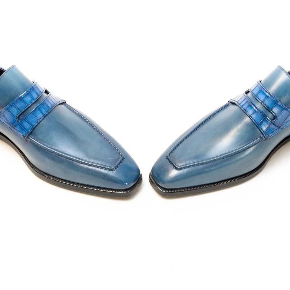 ベルルッティ ANDY(アンディ)コインローファー ブルーフラッシュ カーフ×クロコダイル サイズ7