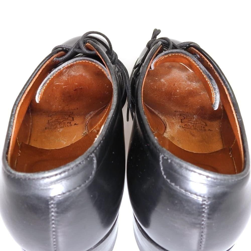 サービスシューズを思わせるオールデンのベーシックなプレーントゥはどんなシーンにも着回しやすい一足。アーチサポートの効いたモディファイドラストは長時間履いても疲れにくいのが魅力。アッパー側面に軽微な切り傷など状態考慮での販売価格です。