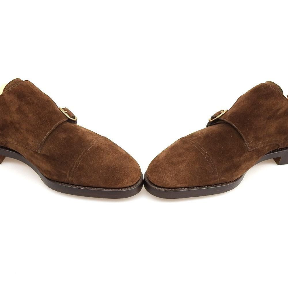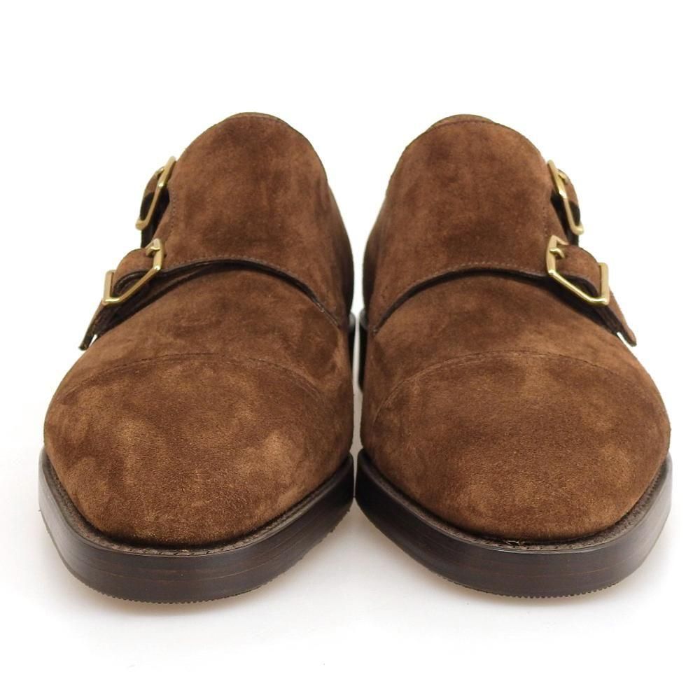 ドレスとカントリーの絶妙なバランスで完成度の高い元祖ダブルモンクのジョンロブのウィリアム。ブラウンのスエードにゴールドのバックルの自然なコントラストが魅力の一足。室内試着の未使用品、ハーフラバー装着済です。