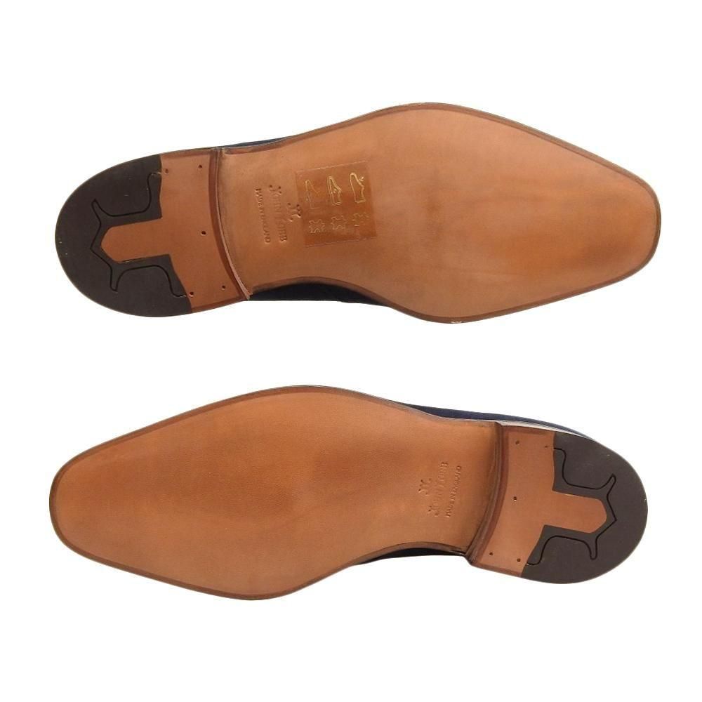 ドレススタイルにも合う外羽根のVフロントのプレーントゥに8000ラストのロングノーズのセミスクエアトゥが映える一足。遊び心のある羽根の曲線のステッチ、当時から珍しいネイビーカラーのスエードがクールながら独自の雰囲気を感じられます。