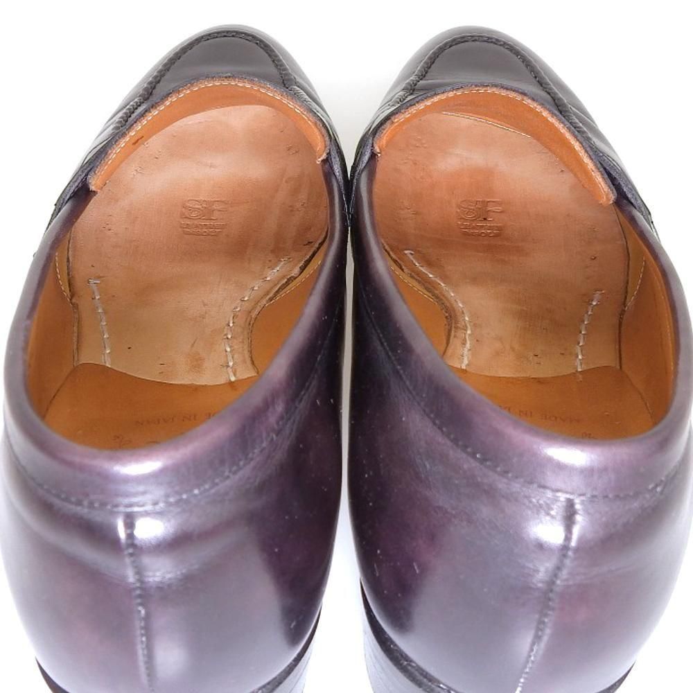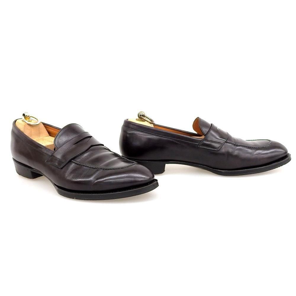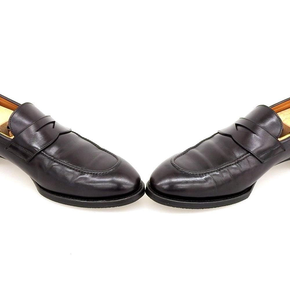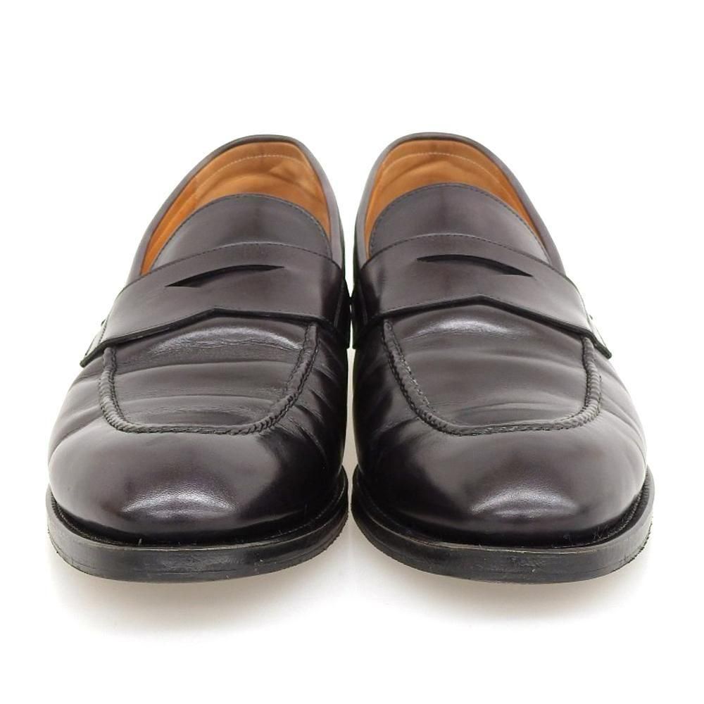 リーガルの上位ブランドで高い技術力と上質な素材を使用し世界に通用する高級靴を制作。幅がありながら土踏まずと踵部を絞り込んだ木型を採用しローファーにありがちな踵の抜けを軽減しています。リストの削れは2ミリ程。革が馴染み履きやすい状態です。