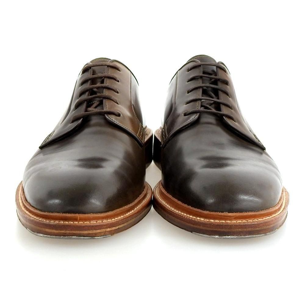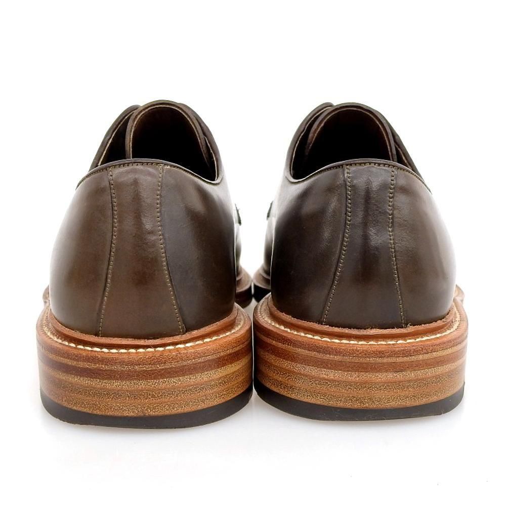 親しみのある5アイレットのプレーントゥデザインに、通常展開のない深みのある緑味がかった、ホーウィン社製オリーブコードバンをあしらったMTO品。コードバンに代表されるオールデンでも展開のないカラーで唯一無二の特別感があります。