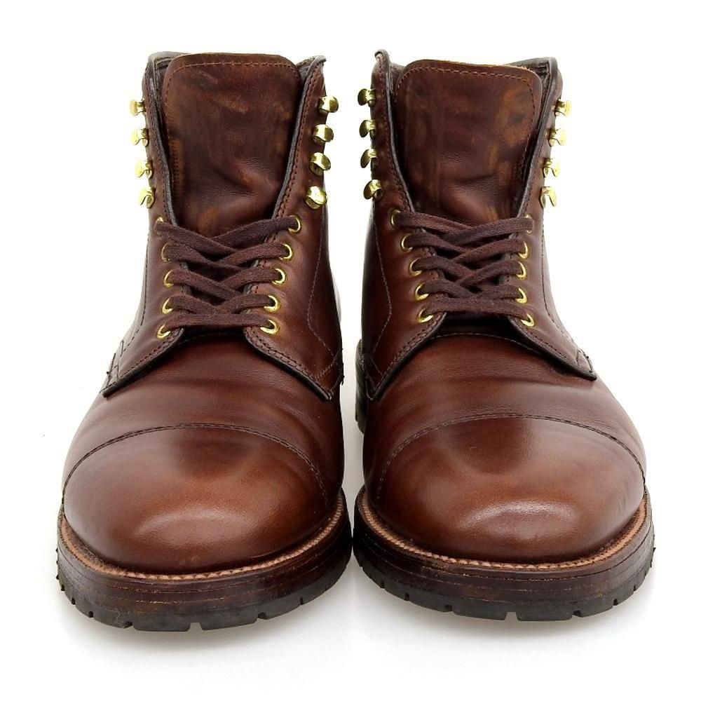高い耐久性と擦れやシミなども味になるエイジングが魅力のクロムエクセルレザーを使用したキャップトゥブーツ。アウトソールにはアメカジのワークブーツを彷彿とさせるコマンドソールのカスタム済みです。着用回数は極わずかの状態です。