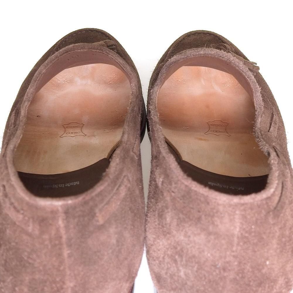 丁寧な作りと木型設計に定評のあるスペインの新進気鋭のシューメーカーのTLB。クラシックなバランスの良いラウンドトゥのフォルムとダークブラウンスエードの優しい表情で幅広いスタイルにマッチします。これから足に馴染む美品。