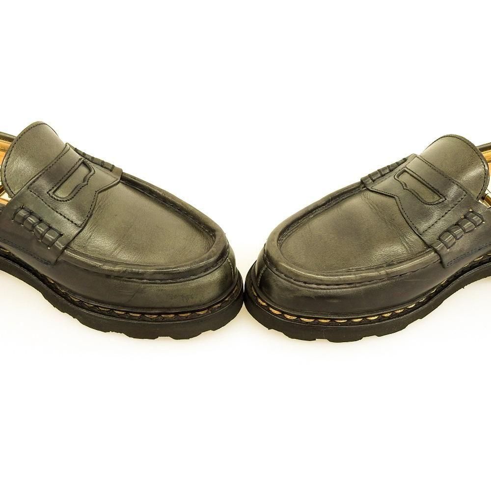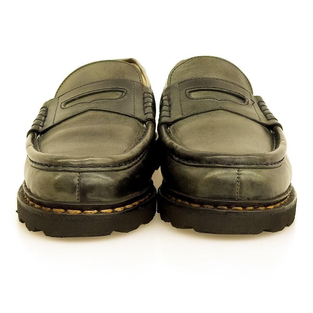 唯一無二のボリュームローファーとしてパラブーツを代表するランス。グレーがかったグリーンの珍しい色合いでムラ感のある経年変化が通な雰囲気です。踵に若干シミがありますが着用15回程度の状態です。