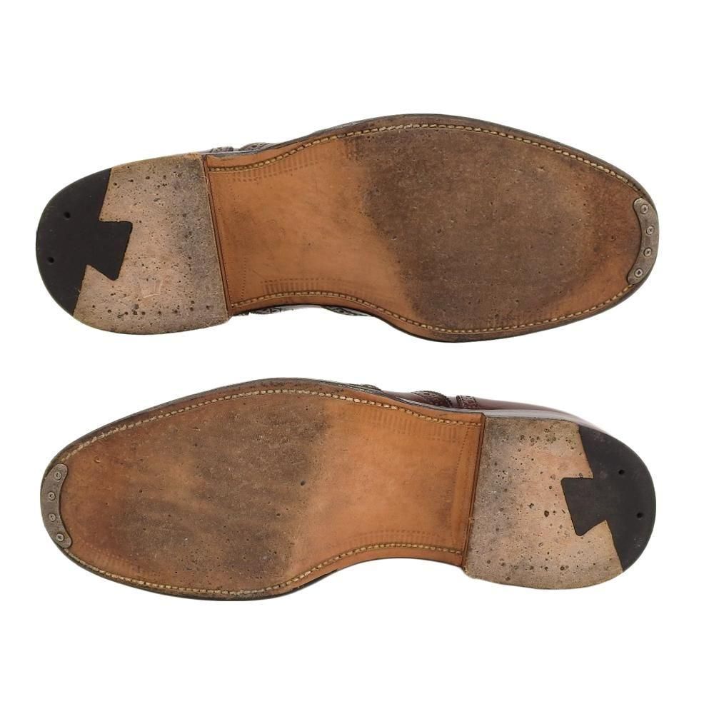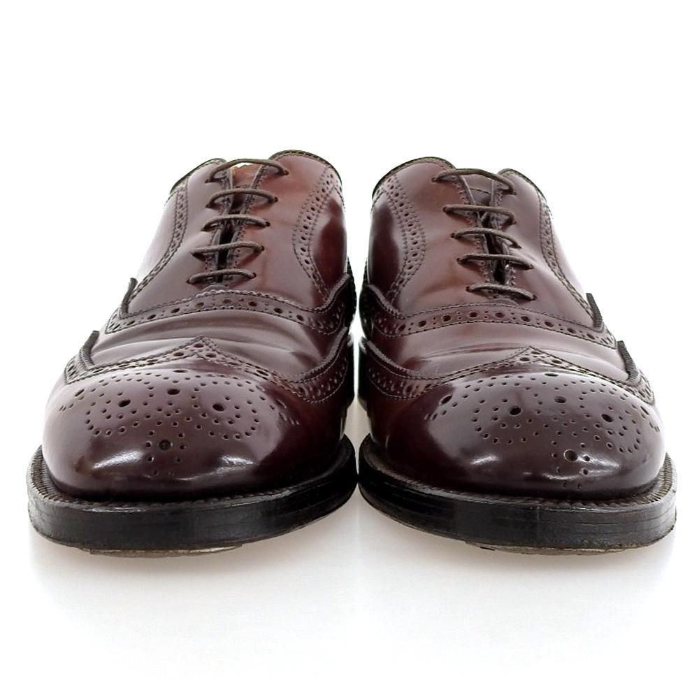 バーガンディコードバンの光沢感がアクセントになるバルモラルのフルブローグ。程よいボリュームのあるシルエット、360度グッドイヤーウェルト製法の無骨さの塩梅が良い雰囲気です。踵アッパーに擦れシミがありますが、他に特段ダメージはない中古品。