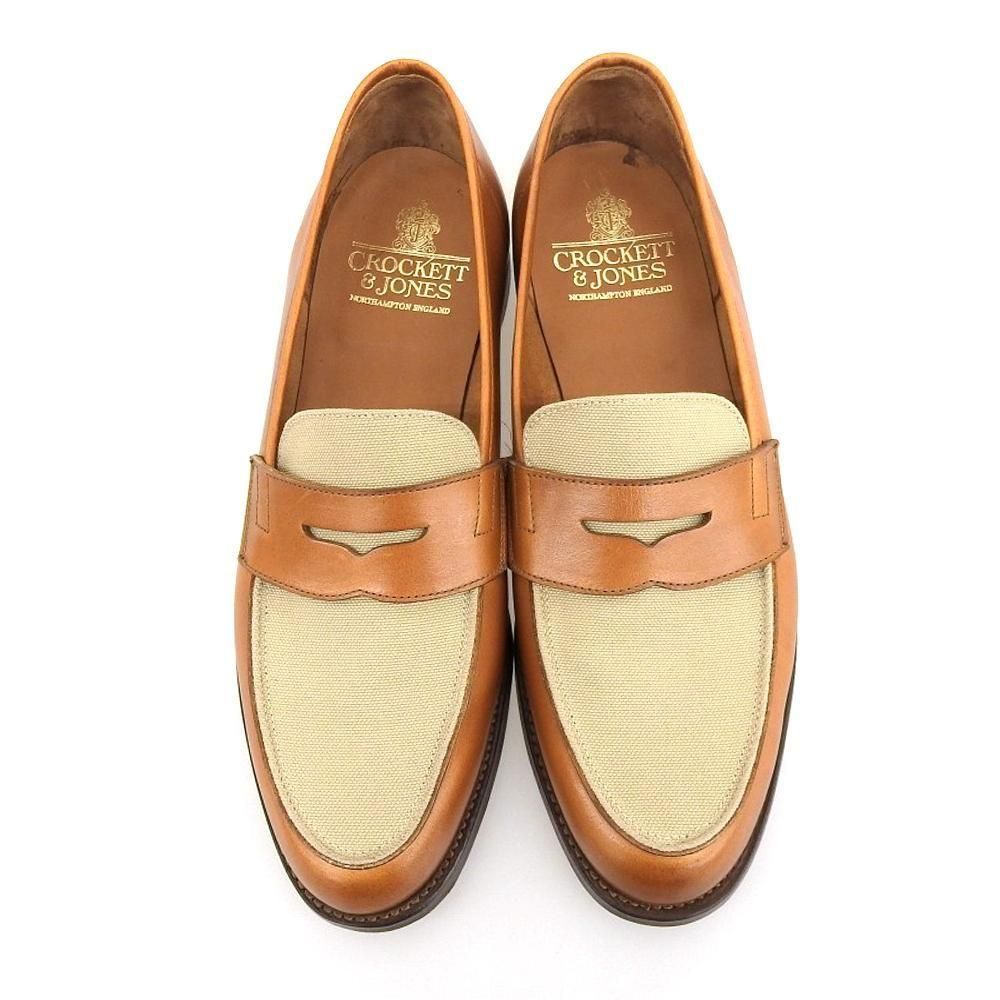 クロケット&ジョーンズ RICHMOND(リッチモンド)コインローファー コンビ キャンバス×カーフ アンライニング サイズ8.5D